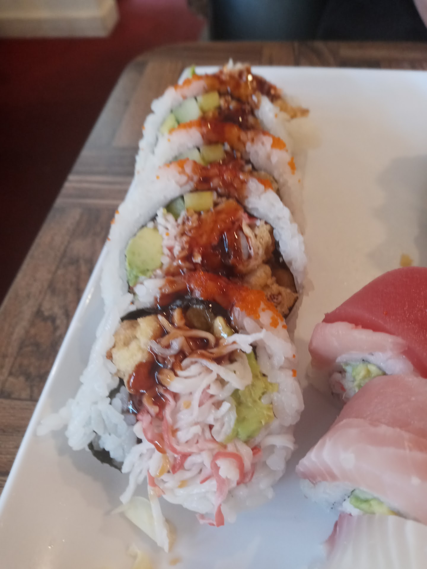 Read moreIt's Monday night, and most restaurants in Roseburg are closed. I ordered take out within 20 minutes of closing. This can be the time to expect sub-par service and quality. But this simple take out order is one of my top 3 sushi orders away from home. I travel a lot of the PNW including Seattle, Portland, and all the coastal cities. I ordered Vegetable Tempura, Peach Blossom and Tiger rolls. It was a great combination of flavors and textures. The peach blossom 8 pc roll with salmon and avocado inside, ahi on top, with a generous coat of tobiko. The Tiger Roll was stuffed with soft shell crab, avocado, unagi sauce, and yes imatation crab which was fine because this was a double wide roll with enough of both. The tempura was a generous portion, with a perfect crunch, even after a short ride in the car. Sweet potato, broccoli, asparagus, and zucchini. 😋😋😋😋...