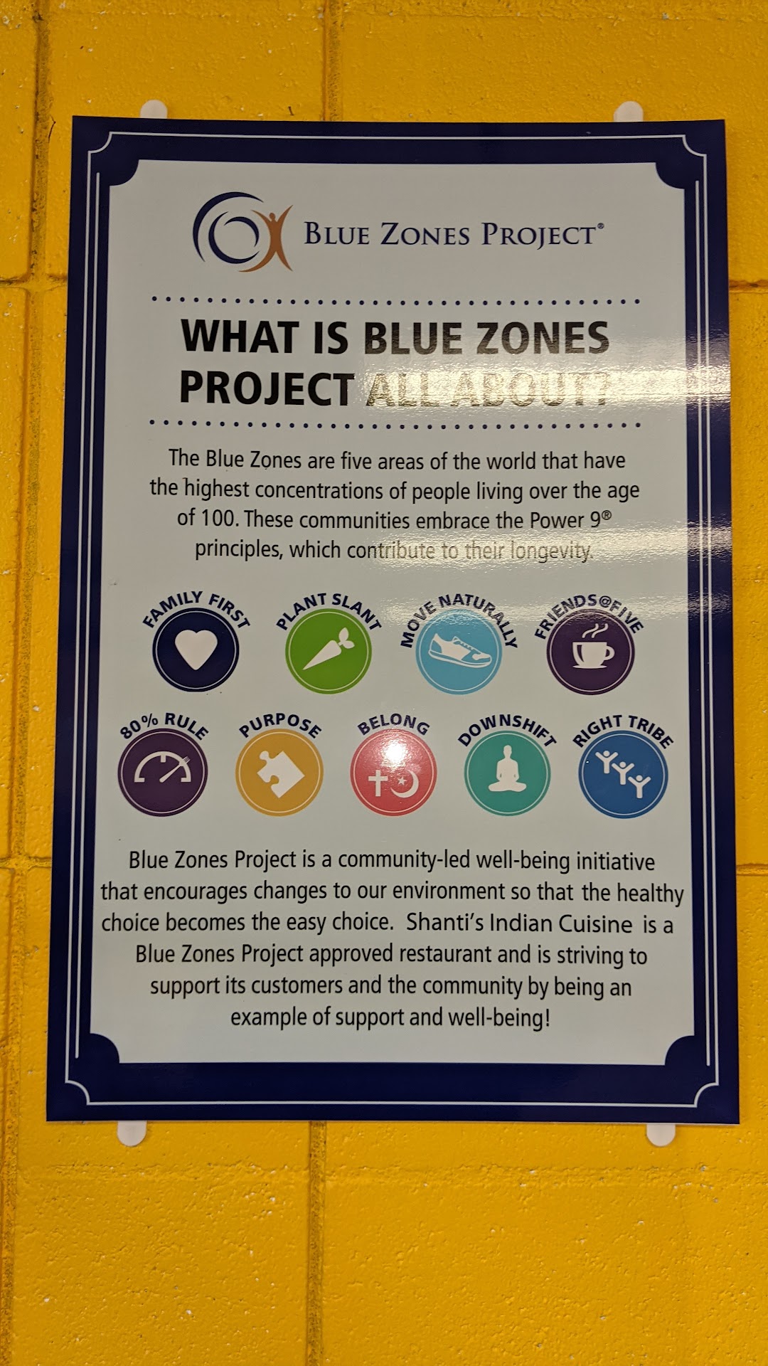 I only wish I'd seen the Blue Zones sign that said we could get brown basmati instead of white, half portions, and substitute dairy for plant-based milks.