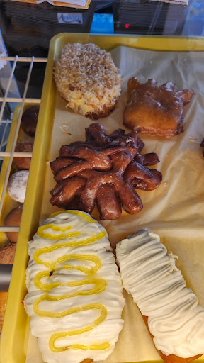 Read moreTraveling through the area and saw the sign on the highway. We were actually headed to Safeway to get a fritter. We decided to get off the exit and see what this donut shop had to offer. This donut shop has all the classics, but also has some fun unique items as well. The apple and blueberry fritters are as big as my head, and the apple fritter was amazing. My husband wanted the maple bar with bacon, but they were out...then the lady said, no worries, I'll go make you one! Really? Great service! We chatted with another local about what he was getting...talked about our A1C levels, and decided we'll all die very...