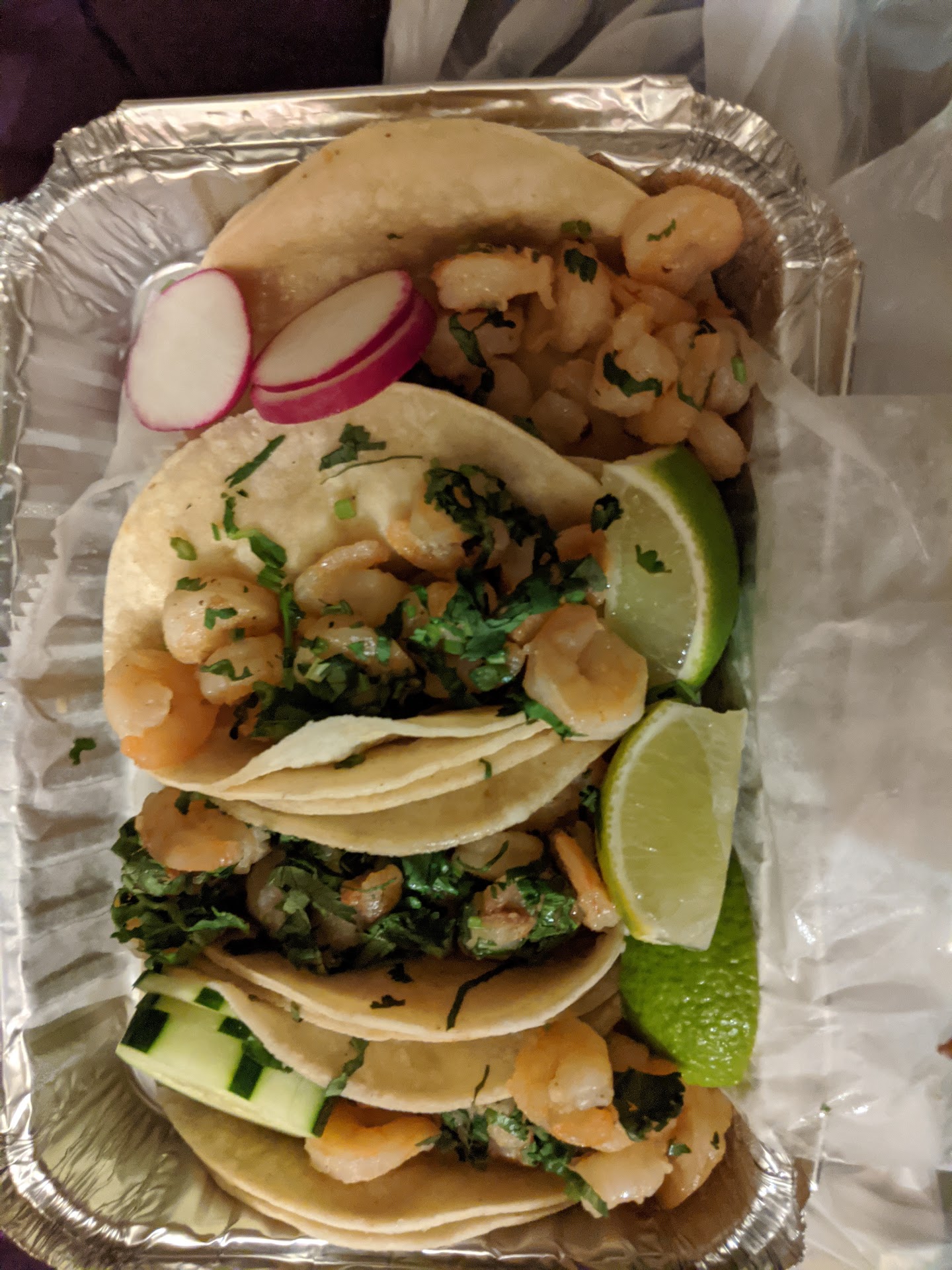 Ā Ā Ā Read moreSmall Mexican restaurant with a nice clean atmosphere. As soon as I walked in the young lady in the front acknowledge me,even though I was the only one inside except for the 3 group of people sitting. I order the shrimp tacos for 12 dollars with minimal toppings. I believe if you want extra toppings it cost more. The tacos were good nothing too crazyand the sauce on the sides were good too. I would recommend to try at least once if you looking for shrimp tacos and might go back again...