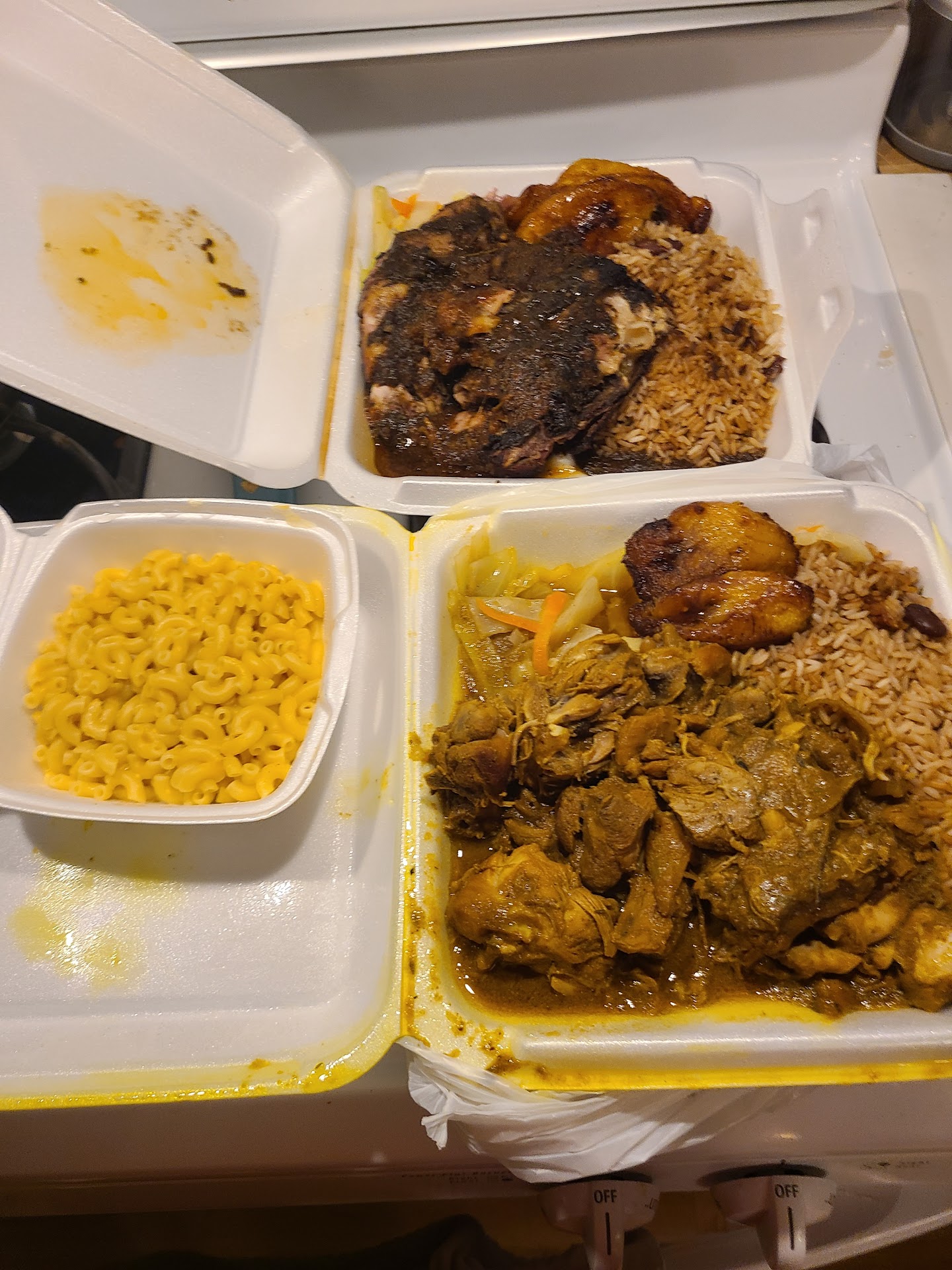 Read moreMy very first time ever trying authentic Jamaican food and I am impressed with how delicious the food was. Oxtail was delicious along with the rice. The oxtail had a unique sweet taste. For not being a veggie eater I liked the cabbage that was included in the order. Sweet plantains are perfect. Jerk Chicken is also tasty and rich in flavor despite it's spiciness that caught me by surprise lol. Brown stew chicken also a plus and finally the curry goat was one of the best dishes with goat that I ever tried. This establishment definitely gives you hunger satisfying portions for your money. The front desk clerk is so kind and friendly that she is always asking me to spread the word which I always respond with "of course" with enthusiasm. I like supporting smalls businesses like this one which is why I order from this place at least once every other week that's how much I am fascinated...