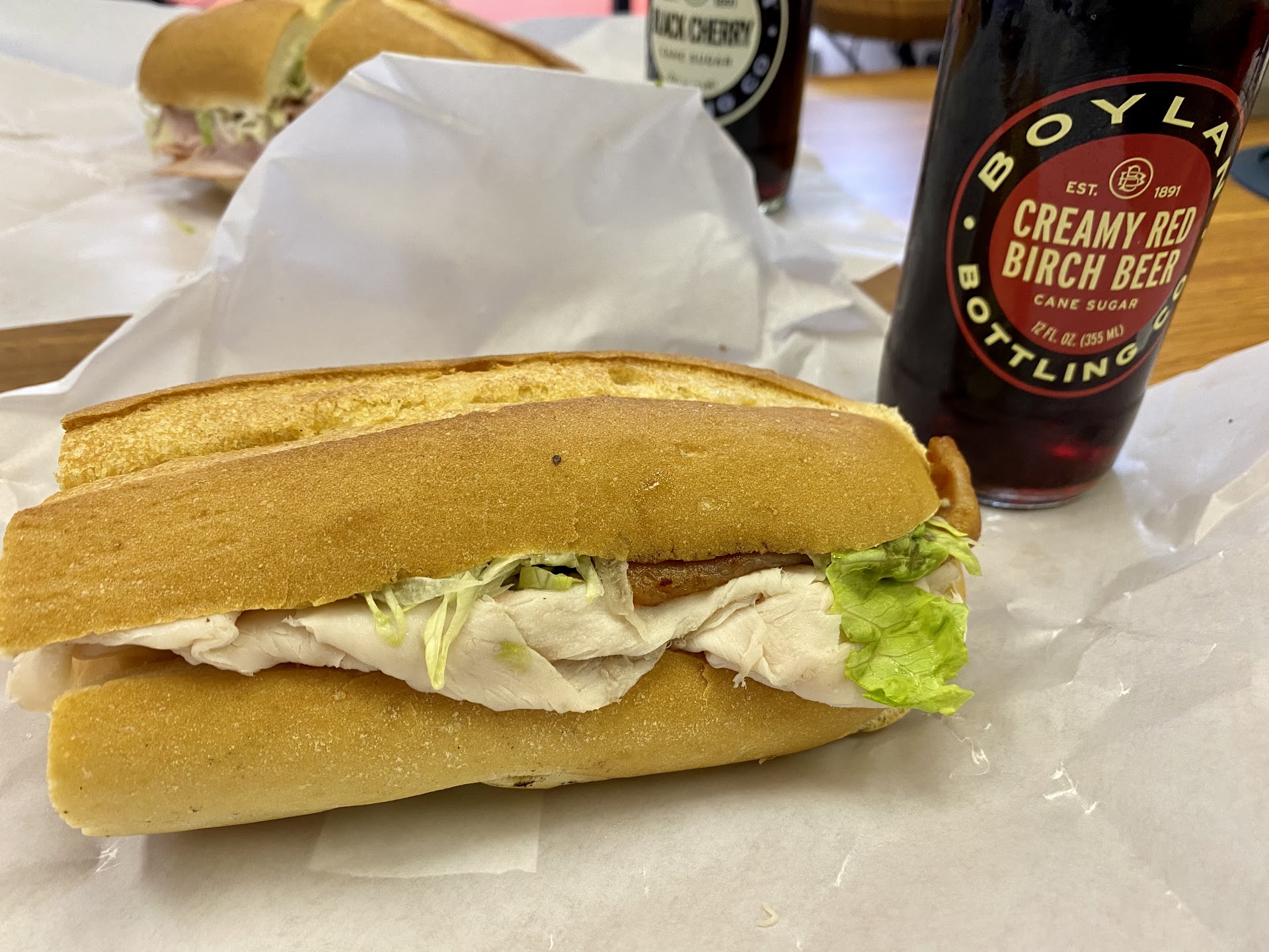 Considered one of the better deli in the area by locals, my colleague and I came to Sub Stop Deli for lunch takeout. Parked around the corner, we arrived at this cozy deli on a busy Wood Ave situated in Roselle. Greeted by the staff, we ordered their 1/2 sub âBelly Busterâ consisting of Boiled Ham, Capicola, Salami, Pepperoni, Bologna, Swiss & Provolone and #26 Turkey Club with sliced Turkey, bacon, lettuce, tomato, Mayo, oil and vinegar. The Turkey club looked a tad smaller than yesterdayâs sub. The âBelly Busterâ is definitely the way to go which was packed with meat. All the ingredients are fresh and good quality as they use Boarâs Head high quality meats. Theyâve done a good job of stacking the sandwiches which I feel like is important when you're making a sandwich. Topping it off, they have a great selections of chips and drinks. While waiting for our orders, the staff pointed us to the old cash register in the front back and the old 1970s menu in the back. We enjoyed our thin sliced meat sandwiches as they were tasty and delicious on the soft roll with the refreshing Birch Beer and Black Cherry drinks. The price was reasonable and can...