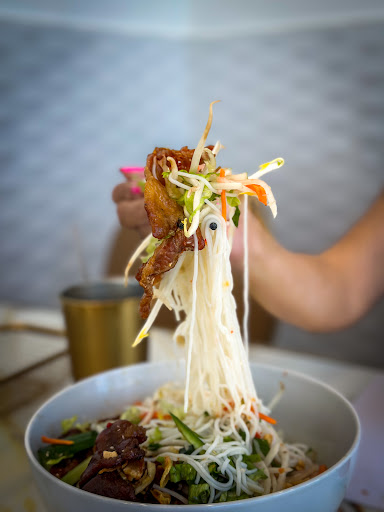 I ordered their catfish noodle (vermicelli) soup with a lot of other proteins and veggies. Extremely tasty after adding their ginger chili oil from the side condiments. I’ve never had condiments like it and it was amazing! I added everything else that came with the soup and it tasted great. I would’ve wished I had taken a photo of my soup and the picture in their menu. When it came out, I felt so let down and scammed lol. The actual bowl when delivered did not look anything close to the photo, which made me a bit sad and didn’t take a photo. The biggest thing that I was more upset on was the crispy pork belly in my soup. Cut really thin where it got too soggy too quick and couldn’t enjoy the thickness and chew in the mouth. I want to believe they’re busy and need to lower portions which is upsetting.