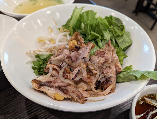 I am so glad to see a clean and quality tasting restaurant opened up inside this shopping center. I've been here twice, once for takeout and one for dine in. They serve mostly chicken dishes here. I ordered the chicken pho and it was very flavorful. I liked that you get to customize the type of chicken meat, e.g. breast, thigh, boneless, gizzards. I chose skinless and boneless for my pho and it was delicious. Dipping sauce was good too. On my second visit, I ordered their other specialty, dry chicken pho. I liked the flavor, once you pour in the dressing/sauce the whole bowl turned into a mouthful of umami, a little bit of savory, sweet, tang, and a hint of spice. The dry chicken pho is like a salad, lots of veggies and bean sprouts. My cousin ordered the pork vermicelli, she said it was delicious. Oh and I also ordered chicken porridge to try, it was authentic Vietnamese style porridge. Everything was good. I'll...