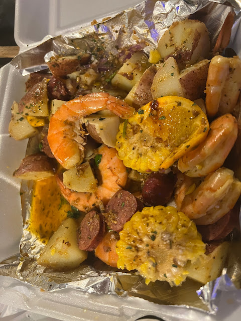 I ordered 2 bags of shrimp đŠ with crab đŠ and potatoes with corn. Both were Soo flavorful. Not to spicy but had very bold flavor made to your liking.