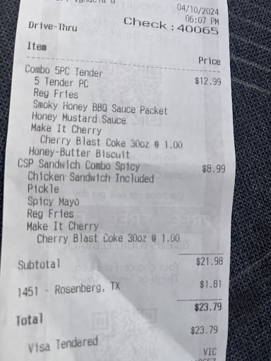 Read moreI rarely post a review when it's not positive because I feel there is more than enough negativity in the world, but this is one of those times that I'm making an exception. The meal I got today from this Church's location was absolutely awful. The temperature of the macaroni was so cold, it had to have just come out of the refrigerator. I always order dark meat because it is always so juicy, but the chicken thighs and legs I received today were dried out. It's like we were given chicken that had been sitting under the heating lamp for a very long time. The only item that was actually edible from this meal was the potatoes with gravy and that's why I gave 1 star. I've worked in fast food so I know how hectic things can be, but please do better and pay attention to how long that chicken has sat under the lights and make sure you're not giving someone macaroni straight out of the...
