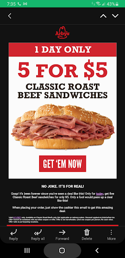 I mean come on Arby's. Really? I can't really be mad, I mean free is the imperative word. You don't have to do it. I really don't even care if you do it or not. However to advertise it and then do that? Just not cool. Like really not cool. This whole world sucks any more and congratulations, you are making it even worse....