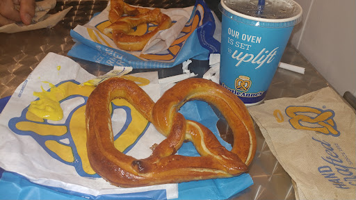 The ladies were unbelievable this visit. I watch them hand a young boy his bag it fell over on the counter and they didn't even offer to refill his cinnamon bites. Then when my children got to. The counter and asked for two pretzel dog minis, one said she ain't rolling anymore the other lady said she had to fill the online orders first. Stopped filled and overfill the one order ( she smashed them down in the container with her tongs and then told us she only got enough for one order and the other order would be 45 minutes and the other lady came back and said I'm bot rolling anymore. Mind you it is only 1:50. They still got a long time to be open. So the children couldn't get all what they wanted. All they had read was big plain pretzels and regular size...