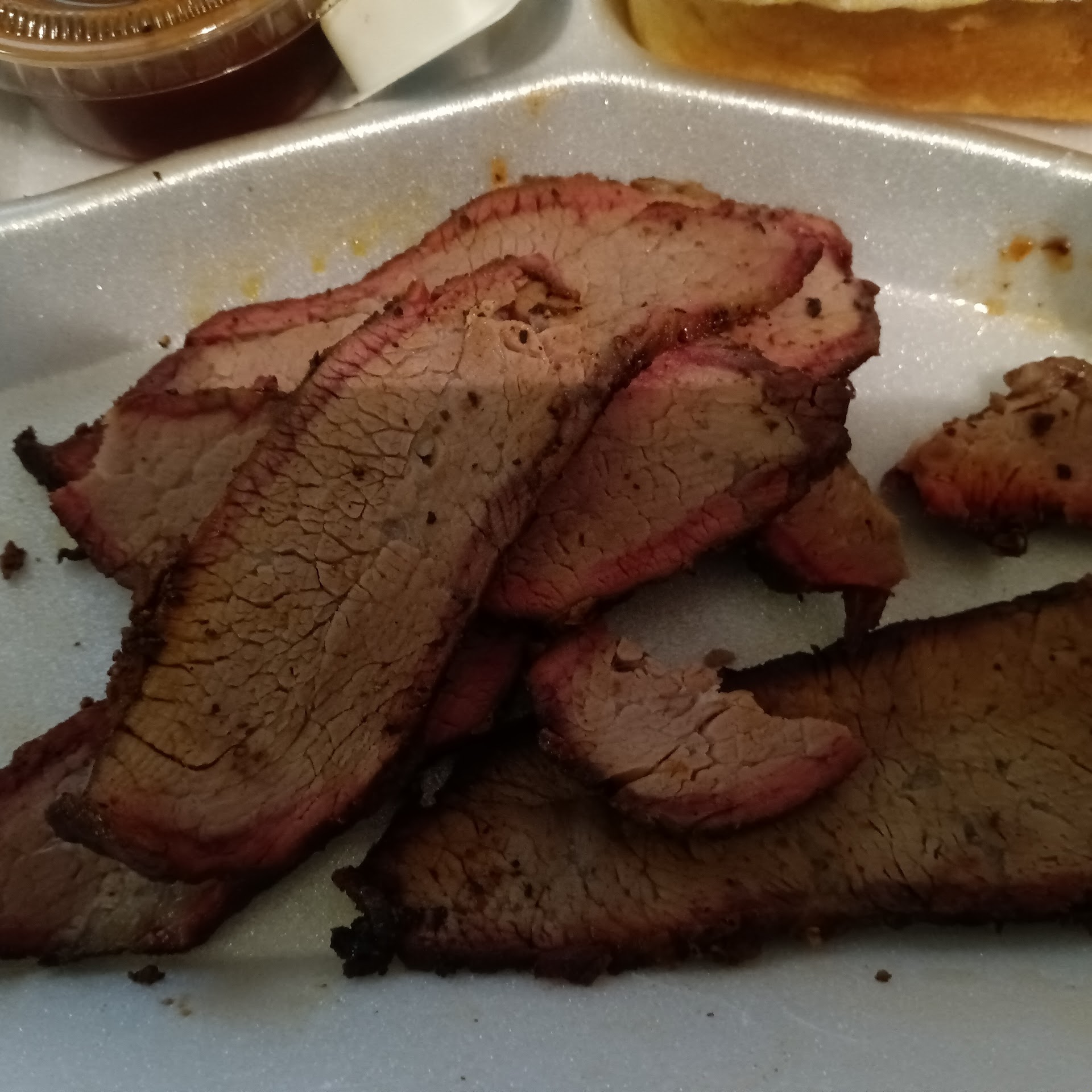 The food was OK. Mac and cheese seemed soggy. Ribs looked good. My husband enjoyed them. They give large portions. Has the BBQ smell at the restaurant and after I got home I still smelled like the restaurant.