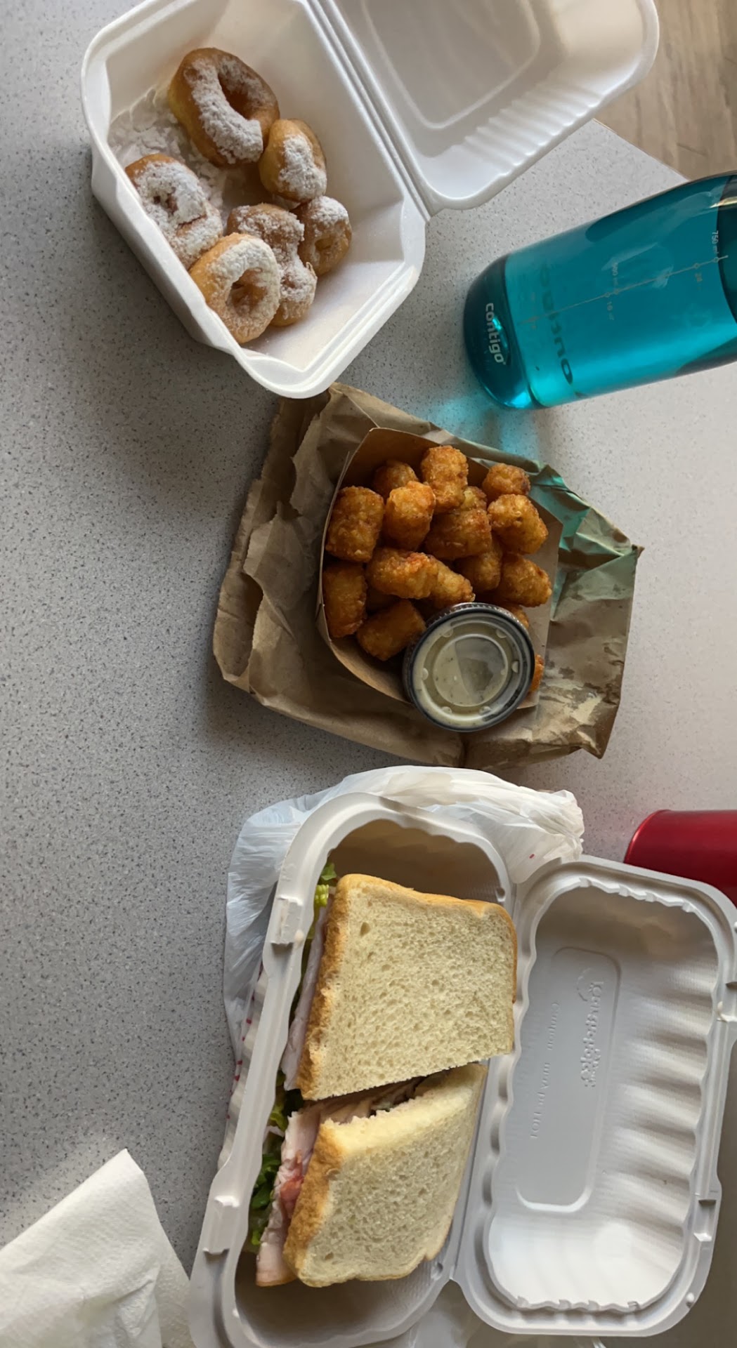 I got my to-go order pretty quickly. The T.A.C. sandwich & a substituded side of tator tots. MY LORD THOSE TOTS!! I can say with 100% certainty that those are the BEST tator tots I have ever had.... and i'm an avid potato lover. I didn't even know that you can season tator tots so the flavors were IMMACULATE. Oh, and a side of homemade ranch!