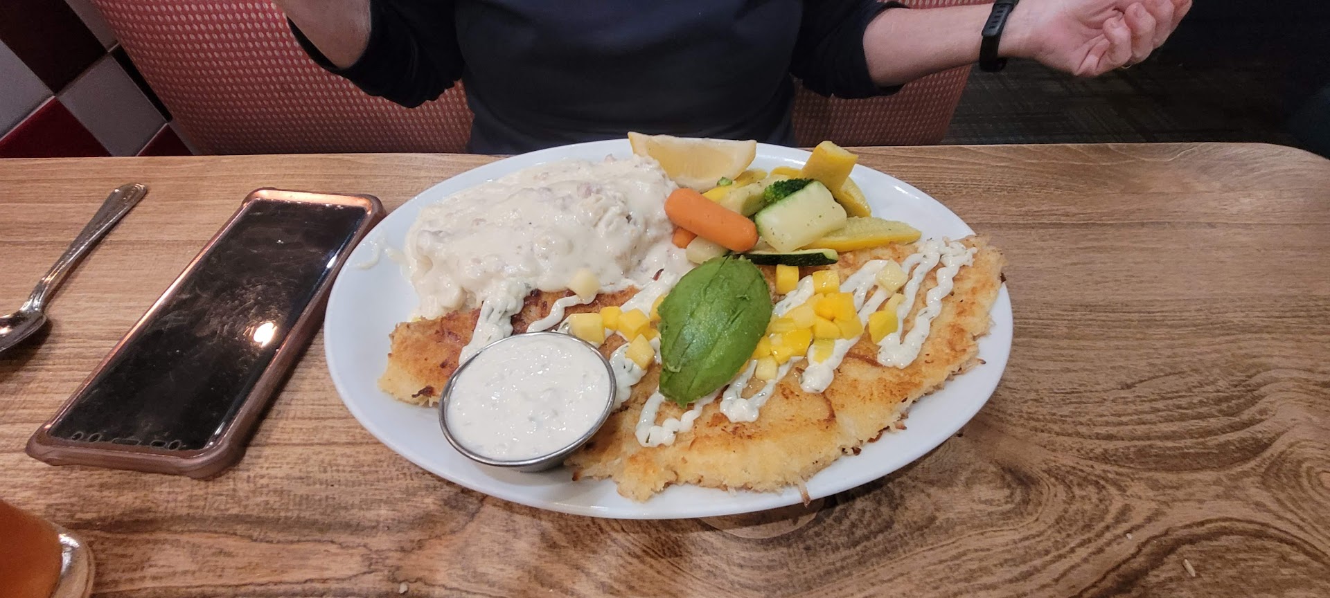 Read moreThe food here is garbage. & to add insult to injury, they are way too overpriced for what you actually get. We ordered over $70 worth of food & everything arrived VERY soggy & VERY cold, & had no flavor at all, was VERY bland. Neither of us could finish our meals it was so bad. EVERYTHING, from the rice, veggies, fish, fries, etc...tasted like yesterday's leftovers, or frozen food that was kept under heat lamps all day, cooked in bulk, waiting for someone to order it so it could be slightly reheated. The only items that tasted decent were the cornbread & appetizer zucchini slices. If they charged cheap Denny's prices, I'd just chalk it up to 'well we got what we paid for'. But we sure didn't get what we paid for. Absolutely not a meal worth $70+ dollars. Then we order breakfast instead another month later, just to give them another chance, & again, nothing was fresh, everything was cold, soggy, & undercooked, from bacon to eggs. We also got a cinnamon roll instead of french toast & the guy at the restaurant told us that's what cinnamon french toast is (then they should call it 'cinnamon ROLL french toast') but on doordash it shows a photo of regular French toast. He said he can't control that & will mention it to corporate, but we'll see if I ever get a call. So word to the wise, you may get something different than what you think you're ordering, & your food will be cold, soggy, & undercooked. We will never be eating at or getting delivery from this restaurant again. This is the worst food we've both ever had, especially for the price. Their cooks are terrible & their menu doesn't match what they...