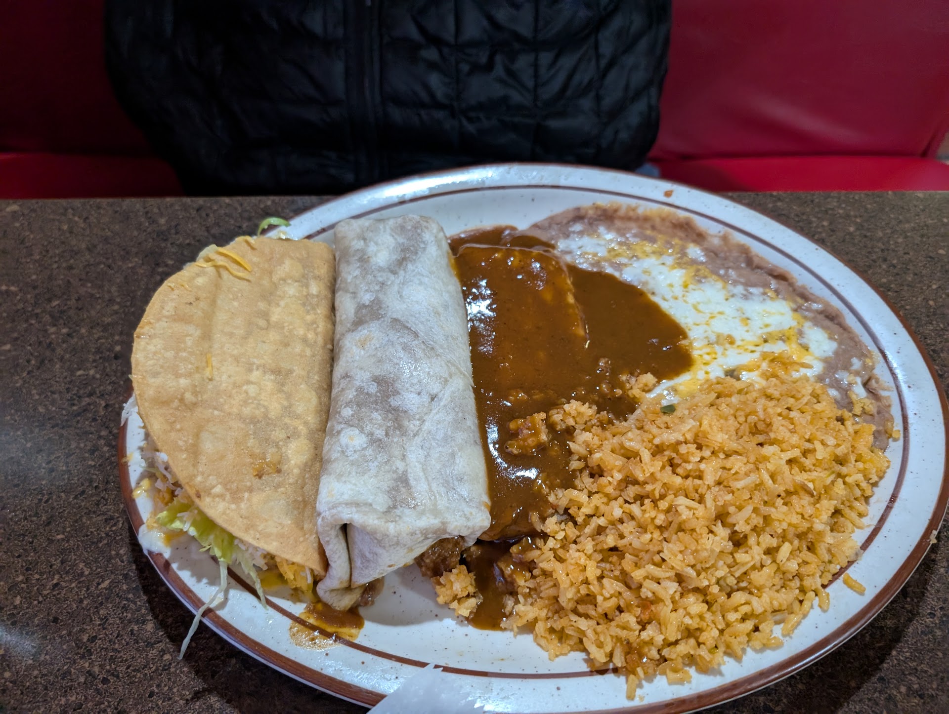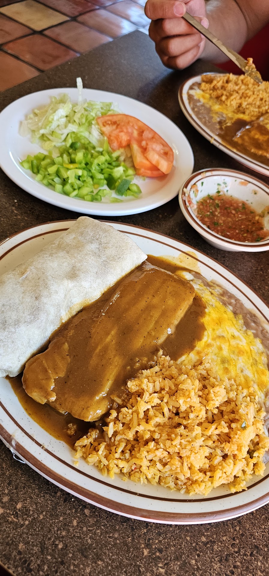 Read moreThis restaurant was recommended by the front desk staff at the hotel I was staying at near by. I wanted Mexican food but not some that was too greasy. Upon arriving and immediately being seated I asked the waitress (who was not very pleasant and seemed annoyed by any questions) if the chimichangas were covered in sauce and oily. She told me they weren't so I went ahead and ordered a chicken one. I was disappointed when she set the plate down in front of me a short while later and the chichanga was slathered with melted cheese on top which left it sitting in a pool of oil. To say my weak stomach was disappointed was an understatement. I grabbed the waitress the next time she walked by and asked to order a quesadilla. She looked at my uneaten chimichanga pushed to the side and proceeded to tell me that I would have to pay for both meals...