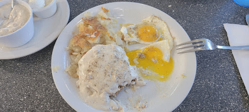 Read moreThis place is as close to a traditional 50's diner as you can possibly get in this day and age. Classic vinyl seats with Formica tables, about half a dozen booths and just as many stools at the counter. VERY attentive and helpful staff, with a wonderful balance of being modestly sociable and informative. The Ultimate omelette was the ultimate on their menu, meaning it wasn't the "kitchen sink", but compiled all the ingredients of all the other omelettes listed. Sliced sausage links, healthy pieces of mushrooms and bell peppers, plenty of cheese, and crumpled bacon wrapped in a fluffy egg blanket. Potatoes were superb! Not just hash browns from potato gratings, but real potato slices grilled up to a crispy brown outside and a firm yet soft interior. Excellent sausage gravy for the biscuits, chicken fried steak, and potatoes. Apple and cherry pies were available, made in house, and delightfully tasty!