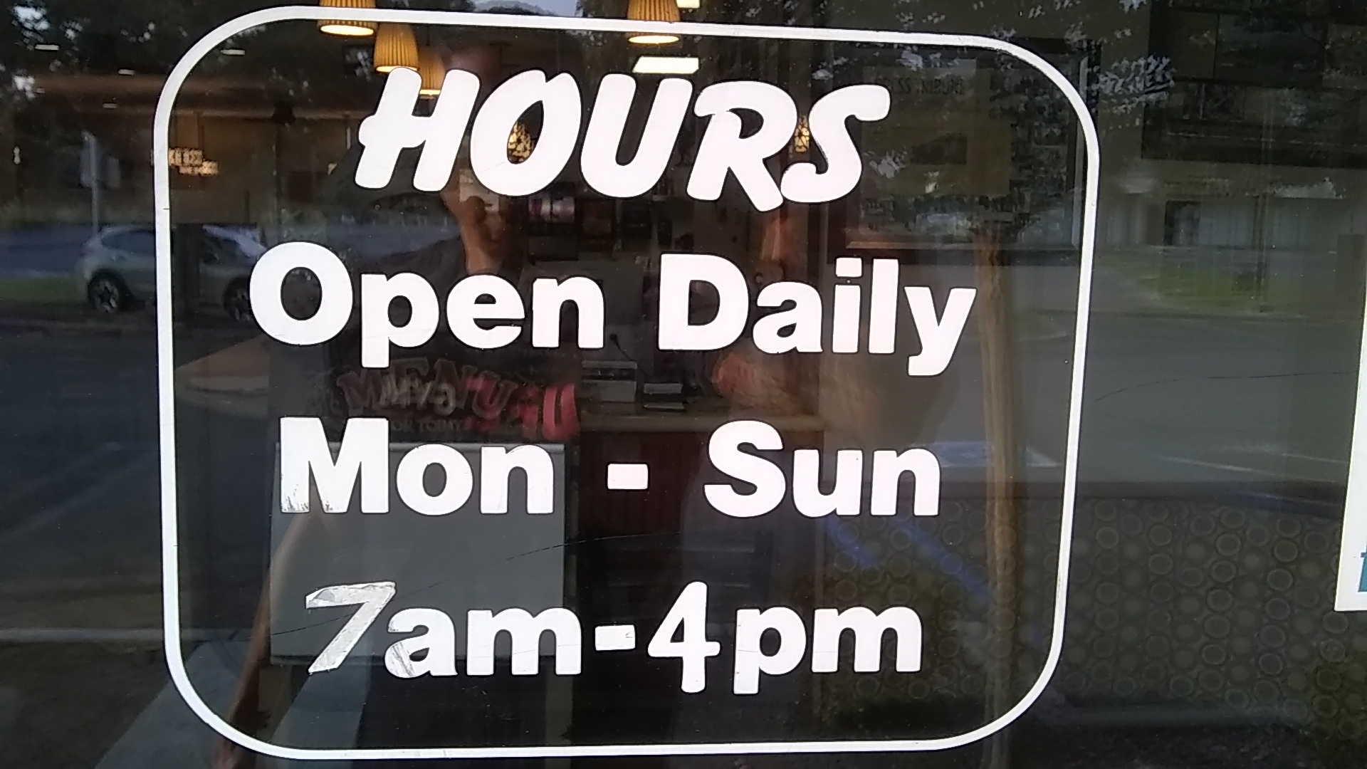 Read moreRandomly chose this place from the list of restaurants near me on my phone, and we stumbled upon a great breakfast joint! We were seated right away, the service was excellent, and the food delicious. I tried the corned beef hash which said it was home made, and it was the best I ever had. There's hash browns in it so having potatoes as a side was too much potato, so maybe next time I'll skip the potatoes and get toast instead. I didn't care for the side of fruit, lots of pineapple, a few grapes, a little strawberry and some melon. My boyfriend got the chicken fried steak and he liked that too. The servers were very friendly and on it- when I saw their decaf pot was almost empty I said to please brew another pot and they did it right away. They have lunch too. Will hopefully go back and try their 'broasted' chicken which...
