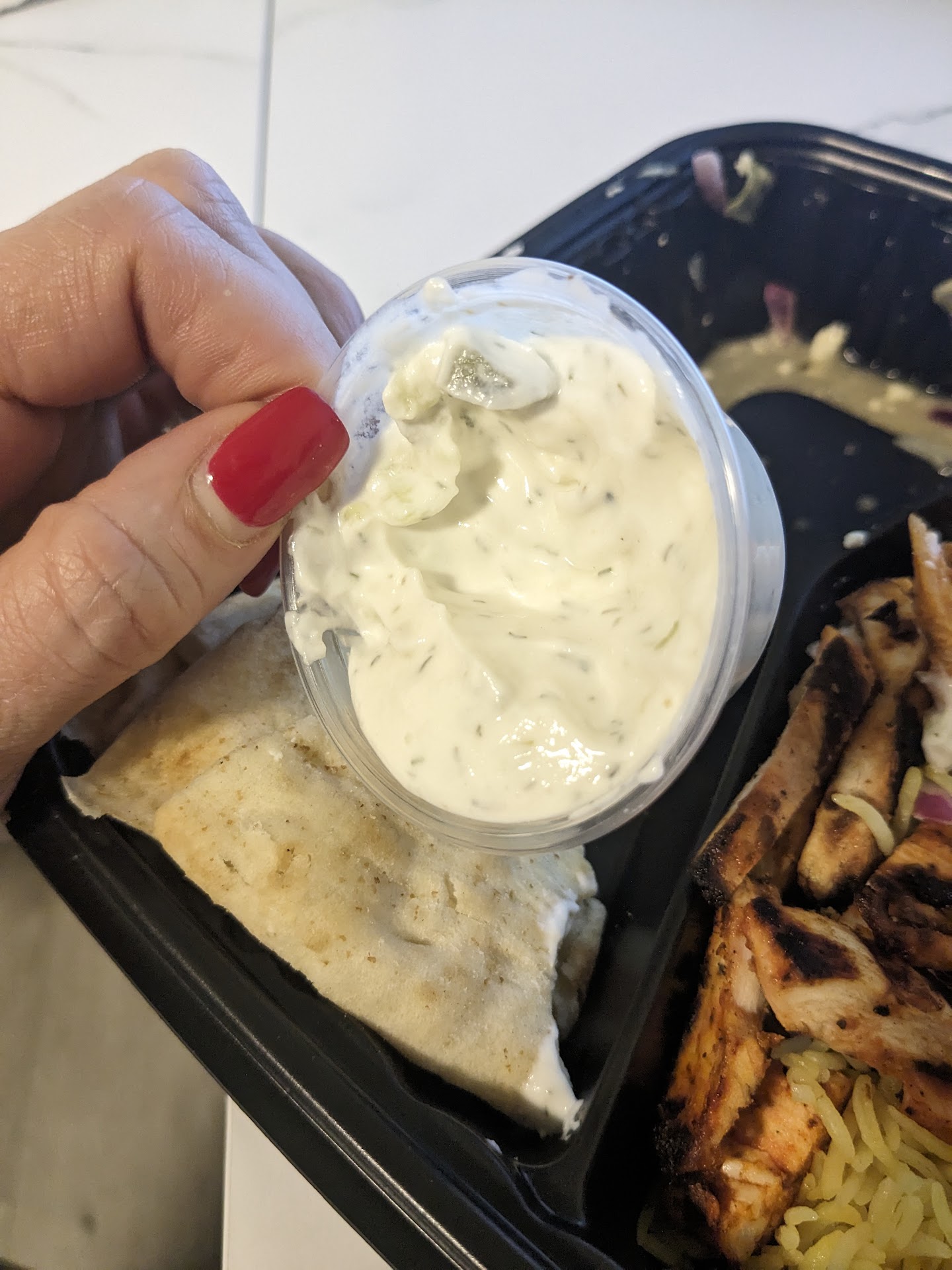 Ā Ā Ā Read moreWe love Daphane's! I ordered the mix and match plate. With 2 chicken choices because it's that delish. Served with beautiful yellow rice and Greek salad, it's a well balanced meal. We asked for our pitas to be uncut. Then I create the perfect bites...warm pita, tzatziki sauce, rice, chicken chunk sliced thin and cucumber and tomato pieces from the salad. So satisfying. My husband is a huge fan of the falafel that are always toasty on the outside and flavorful on the inside. Treat yourself once in a while to a piece of Baklava. The nutty treat is a nice change. Sac is still covid restricted but we ate outdoors. We had some disinfecting wipes to clean our table and chairs. It was awesome to enjoy our meal and the Indian...