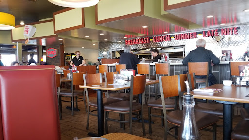 My aunt, son, and I come to this particular location frequently because usually the food is wonderful and the servers are polite, friendly, and check in on us consistently. We usually go here 3-4 times a month but after tonight I don't think we will ever return. When we arrived we were given 2 options for seating right next to the bathroom even though there was plenty of seating inside the restaurant itself. We decided to make the best of it and we were going to sit at the table furthest from the bathroom because, personally, I find sitting next to a bathroom while eating unappetizing. The seats were absolutely filthy. There was cheese and pieces of food all over, so of course we couldn't sit there. So we ended up right next to the restroom. After we sat we overheard our server on the phone in the hallway by the restroom talking to a friend and bragging how there were no managers on duty, which I found to be rather odd. Our server, Paul, paid absolutely no attention to us. When we ordered he wrote my son and my aunts orders down wrong. The server said it was the cooks fault and got my son a piece of bacon to go with the meal but never exchanged the french toast for the pancakes. In fact, he argued the point, saying my son had ordered french toast. My aunt and I both confirmed that he had indeed ordered pancakes but the server never exchanged the french toast, so I told my son to just eat it and that it would be good. My aunt had ordered a rare burger with the cheesy hashbrown balls. Both the burger and the cheesy hashbrown balls were burnt. She had me taste the cheesy hashbrown balls, which we paid extra for, and they were like charcoal. They were horrible. Rather than complain and get into another altercation with the server my aunt just ate it. The server only came over once to check on us, so we had to get up and ask for what we needed 4 times. I might add the two servers where by the kitchen window gossiping about the guests, which I found to be extremely rude. The 1st time I got up I had to interrupt their interlude to request silverware for our meal. The 2nd time I got up I needed a straw as the server only left one for my son and not one for my root beer. Our server at this time completely disappeared so I had to ask the waitress on duty and she seemed irritated that I was bothering her. The 3rd time I got up was to order coffee for my aunt and I but again, still no sign of our server so I had to ask the extremely irritated waitress. The 4th time I got up was to request coffee refills for my aunt and I. My aunt wanted a 3rd refill of her coffee but after the way we had been treated she was afraid to ask and I just didn't want to get up and search for a server for the 5th time. We were going to order dessert since it is my aunt's birthday but after the horrible food and service we decided not to. When we went to pay I gave the server our buy one get one free coupon (I must add that he wouldn't allow me to use the coupon for what I wanted, which was the french toast slugger. He said the coupon wouldn't work, even though that is what I wanted to order. I couldn't understand this because my aunts meal was more expensive so this is the one we would've gotten free because it cost less). All over the internet, your website, and on the coupon page it states kids eat free from 4-10pm and there is no side note next to these statements saying kids don't eat for free if you have a coupon. He refused to give my son his meal for free. Although in the past I have used a coupon and have gotten the kids meal for free. Considering my son's meal was $4 or $5, I found this to be ridiculous. Especially since we spent so much. My aunt was going to use her AARP but the server again refused. This was my aunt's birthday celebration and none of us were happy when we left. I have never been so dissatisfied with a restaurant before. After tonight's experience, unfortunately I cannot recommend...