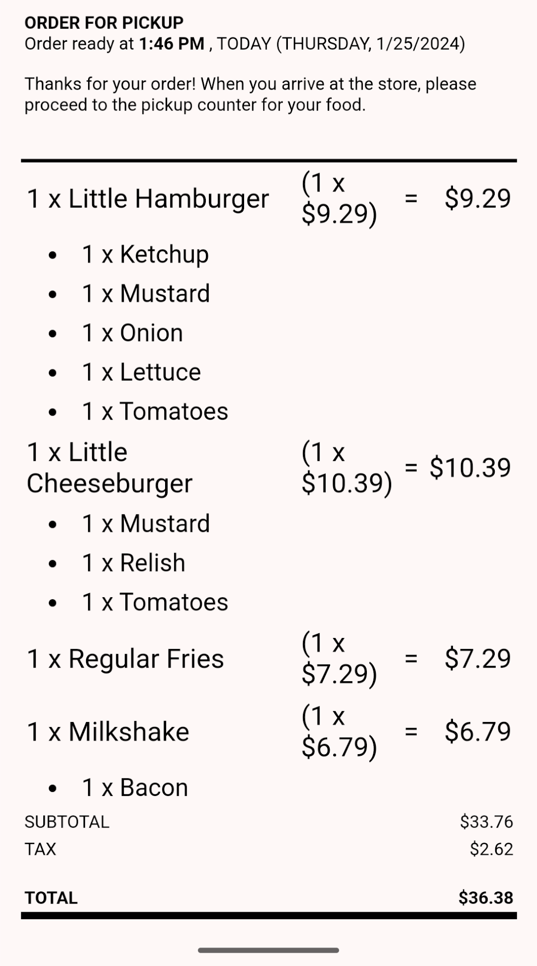 The actual food isn't bad, but it isn't absolutely great either. I'm not going to go into specific detail to each ingredient. The fries are what most fans rave about, but I found them to be okay at best.