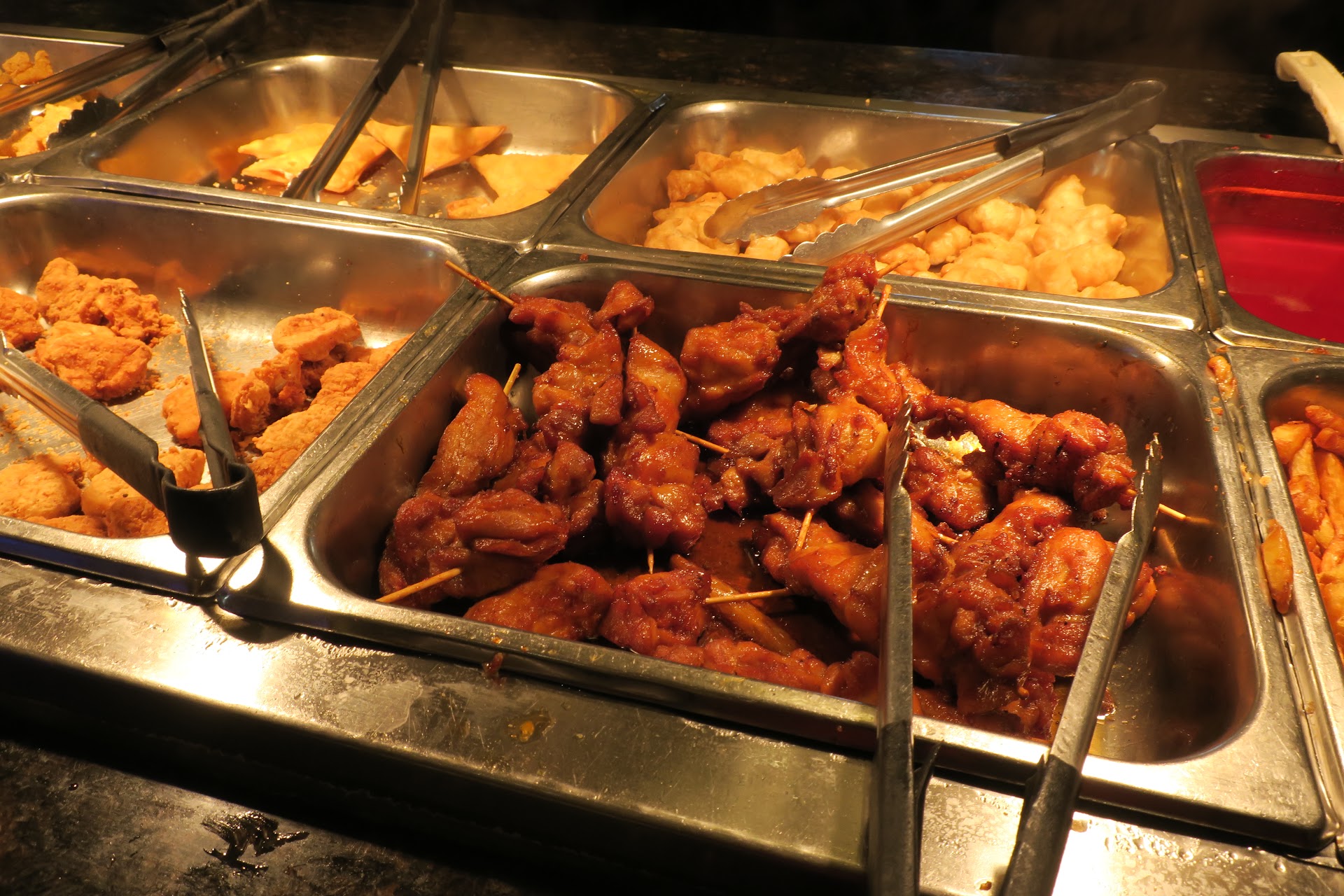 If you're looking for edible food, that's NOT going to have you running back and forth from your bathroom for 24 hours+ - then I would skip this buffet. $53 dollars after tax for two adults to eat dinner, is a robbery for the food they serve here and I would never say that about an establishment lightly. I know it's a buffet, but endless flies should not be on the menu. To literally have your staff all have big yellow fly swatters on hand, and while were eating they're actively just SMACKING these bugs around in some attempt to make the dining experience less disgusting, is so uninviting to see and hear while trying to eat food of any kind. Literally all I got was the chow mien, a piece of the sweet and sour chicken, the chicken on a stick, and some fruit. THAT'S IT and I took just a few bites of that already slim selection and the same night, and today being the following day, I am sick to my stomach- as is the other adult I dined with. We both took a FEW bites, cut our losses with this super gross tasting and grossly over priced food, and left. Upon leaving I notice a table with to go boxes (at a buffet? Weird.) so I looked closer at the sign next to it and it says FOOD WASTERS WILL BE CHARGED AN EXTRA $10 PER PERSON FOR NOT FINISHING THEIR FOOD. What??? That's horrible. I support not wasting food but you're already a buffet for crying out loud. Your restaurants existence alone is a gross display of over eating and food waste. The whole experience was something out of Kitchen Nightmares. We just got out of there before they had time to check our table (while paying they ask where you sat even though they sat your originally and literally have a staff member inspect the plates) to avoid what would been an extra $20 fee between the two of us and got the heck out of there. Will never be back and I hope others heed this warning, unless they're really wanting to put their digestive system...