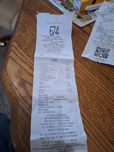 Read moreTime and time I make the poor decision to go to this location in the evening and it never fails Cold food Today I went and was gna order via app but didn’t want to chance cold food Drove there on my lunch placed order at kiosk no option for cook to order Ordered Cardi meal and asked person at counter to who advised me to send order to counter for them to add cook to order The cashier then says “I added all that I could to cook to order” I asked her what couldn’t she put cook to order she said the pie I told her I always ask and they tell me it’s 12 minutes and I didn’t mind waiting she replies “well if u wna wait 12 minutes” I just told her I don’t mind After 20 minutes I asked about order the mgr tells me “well we told u 12 minutes” I reply I know but it’s been 20 and a young lady passes me my order Only for me to drive 2 blocks home and I have cold hard fries Called location to get mgr name CODY No apology at all more of an I don’t care attitude Refunding order after work and took survey as well I’ve called this location many times and are familiar with district mgrs/gms and it’s all the same they’ll apologize offer to replace food for free but staff remains unprofessional rude and with a lack of McDonald’s food...