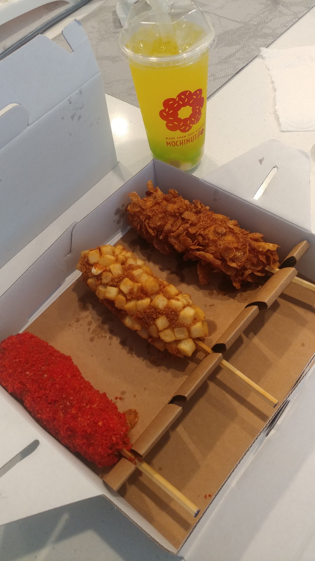 Donuts were really good. Nice change from regular donuts. Half a dozen was like $18. Pretty pricey. Corn dogs were good. Got the potato, hot Cheetos, and crunch cereal half and half. The only one I would get again though is the potato. Got a Indian chai drink which was a little funky but still good. Also got the pineapple drink with green apple jelly and mini mochi. It was a tad too sweet for me. My biggest complaint is they need a new system for their corn dogs. I went at 10:30 am and the worker told me they changed their times for the availability of their corn dogs to 12:30 pm- 7:30 pm. Had to go back a second time in the same day. They don't take phone orders. They also can't take your order until the corn dogs are actually ready. Weird. I wish they would just have it available at the same time of their store hours. Also, when they did bring out my corn dog order they don't call you. They just walk straight back until the cashier is free to call you. Other than that service was really good and I...
