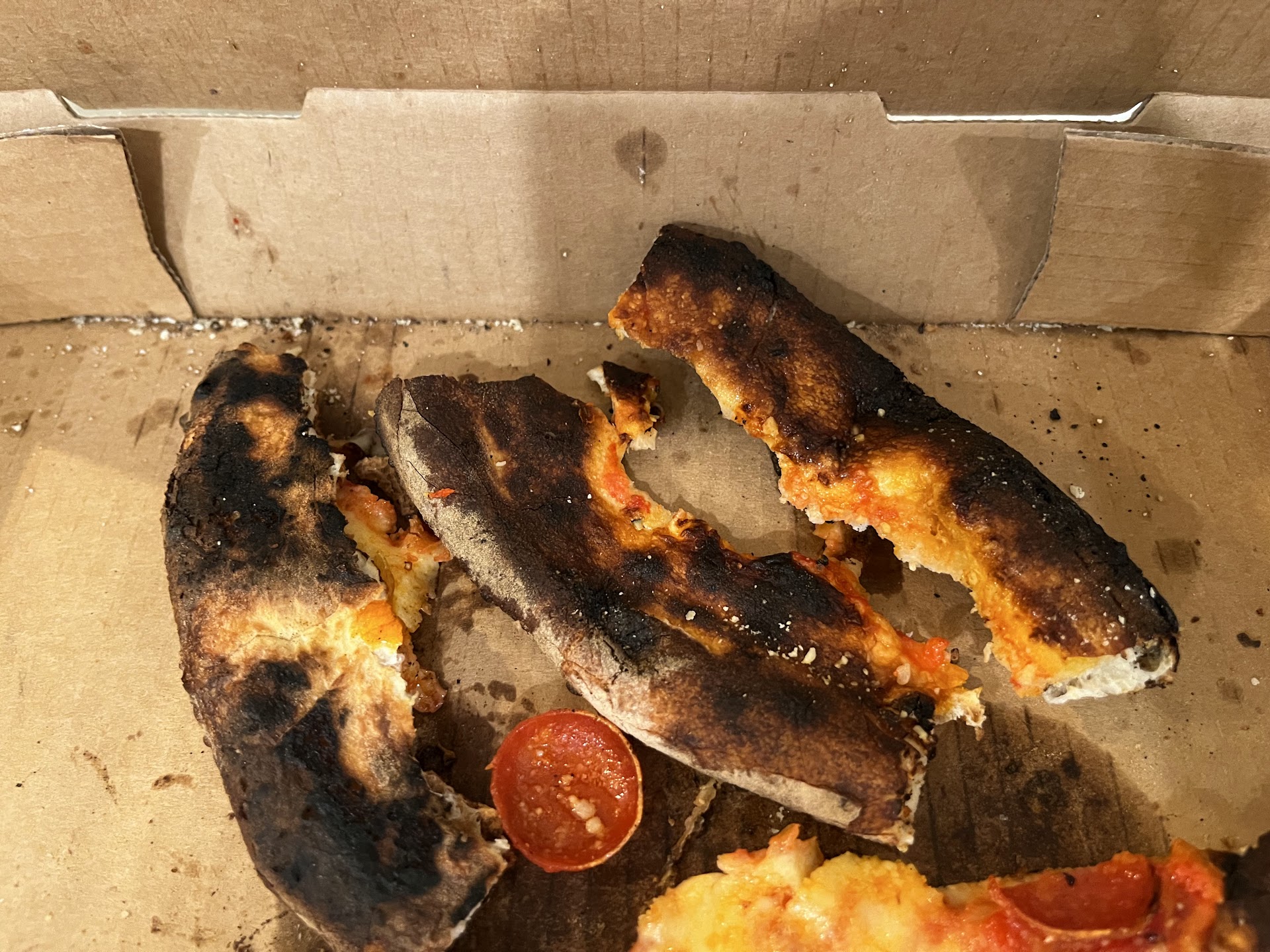 My family and I visited your pizza restaurant on Sunday September 29th 2024. At the Roseville (potluck) location. It was our first time there. Upon trying to order at 540pm-ish we were told, "we are closed!" By the male solo employee. However, my husband begged him to let us order a pizza since we were out of town. (Google says hours are till 6pm. They should change it to 540pm if that's when all these restraunts take their last orders at.) But that's another issue.) So I'm sitting in the seating area watching things around me. 2 gals from the taco shop next door, clock out and then go over to your pizza restraunt and are just laughing and messing around with your male employee, Behind the counter too! The girl even took the long pole pizza spatula and pulled out a pizza and put it in the box! Laughing and giggling the whole time. I sure didn't think this was sanitary or appropriate behavior. However, I didn't say anything. So few minutes later, I go to counter to get our pizza and opened it up and it was completely black and charred around the whole outside edge of the crust. So we each took a few bites of a piece (of the middle) and that was it. But it was also extremely greasy!!!! You can see my photos below. The whole experience was disappointingto say the least. First, to being told rudely that you were closed then, to see the (male) employee messing around with 2 other female taco restraunt workers, behind the counter and then the very burnt and greasy pizza to top it off. And we paid $25 with tax and tip...!!!!! Not sure if this is how your crust always is or if it was because of the distraction of the two girls that our pizza was neglected and burnt with carcinogens? But we will not be returning. Also I emailed the company with this story and no response.... So decided to do an honest review. Hope to save others from wasting...