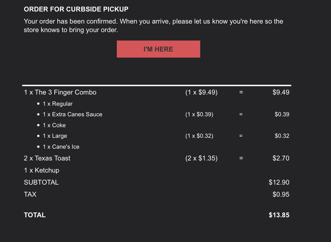 Read moreHighly Disappointed. Recently this location has gone down significantly. A few months ago they didn’t have any issues but as of recently they have gone down hill. Two weeks ago my partner and I ordered inside and ate in at the restaurant. I had ordered a Box Combo with No coleslaw but extra fries and extra canes sauce. They gave me a box combo with double slaw and no French fries. I asked for the fries and they fixed it. Then tonight my partner and I had ordered a curbside mobile order, I ordered my regular Box Combo with no slaw, extra fries, and an extra canes sauce, and my partner ordered a regular box combo. Instead we were given one box combo with extra canes sauce, one sandwich combo, and one 3 piece fingers combo. Again this is not what we ordered. Also we waiting 15 minutes in the mobile curbside spot and nobody came out with our food, we had to go inside to get the food. The workers were inattentive, talking to their friends, and one of the managers was asking for a worker to help us, but several workers where talking saying “you go help them;” “no you go help them,” etc.