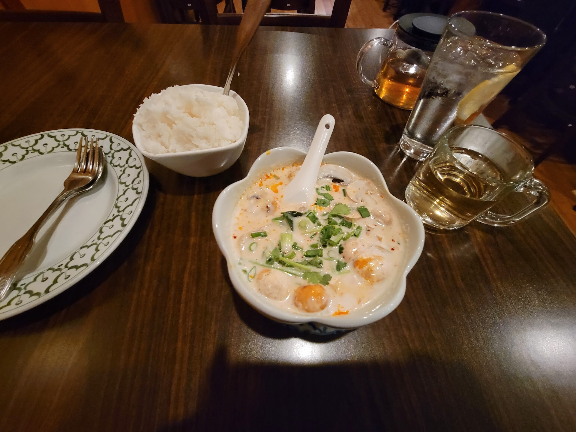 Cons: Didn't really hit that addicting Thai food experience I was hoping for, and if it matters to you the bathroom was ridden hard and put away wet (floor was nasty, walls have some kind of chunkage sprayed on it in parts, light fixture was missing — but hey you didn't go here for the bathroom experience.)
