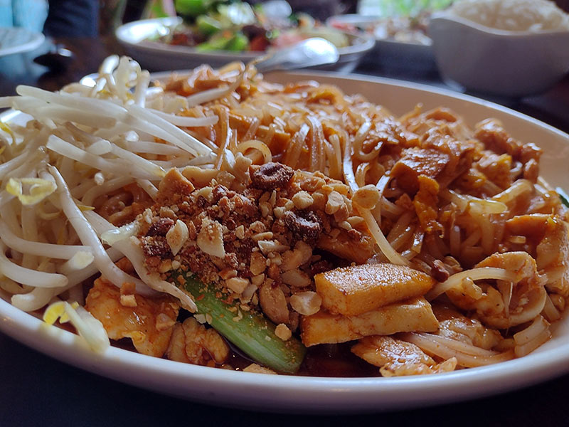 Went for lunch on a Saturday around 12:30. The server was friendly and helpful and we ordered Chicken Pad Thai, Pork Drunken Noodle, and I think some kind of beef/vegetable stir fry?
