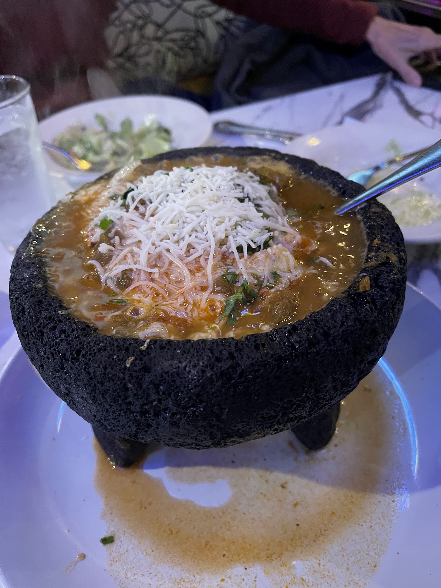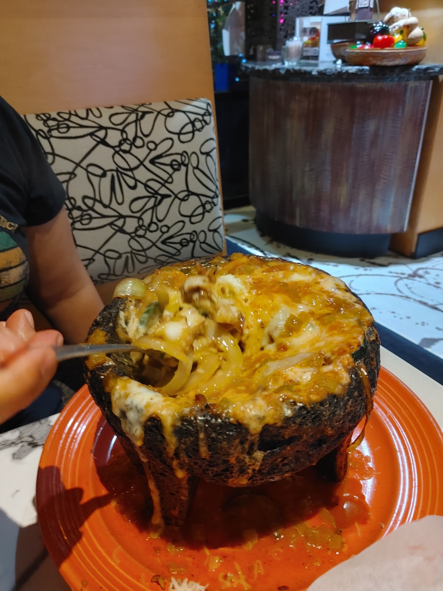 Read moreFirst time visit. I am not a doctor. Their salsa was a 10. The Atmosphere was very good and surprising from the outside. The patio is nice but too close to the busy traffic noise. The service was friendly. Warning if you do not like cheese this place may not be for you. I like cheese so i happy. The bar is good. Limited option of whiskey and scotch, but my co-diner found that consuming two traditional margaritas on the rocks (with edible flower) for a short while cured lower back pain. I am not going to publish my medical findings but will keep researching. We had the Molcajete with talapia (lot of cheese and zucchini) very good and recommend. We also shared 2 enchilada beef and carnitas. There was not enough meat to identify which was which. I was a little sad. But the taste was good. The el pastor taco was 9/10. I will revisit and do recommend. Do not do the bean dip as an appetizer...
