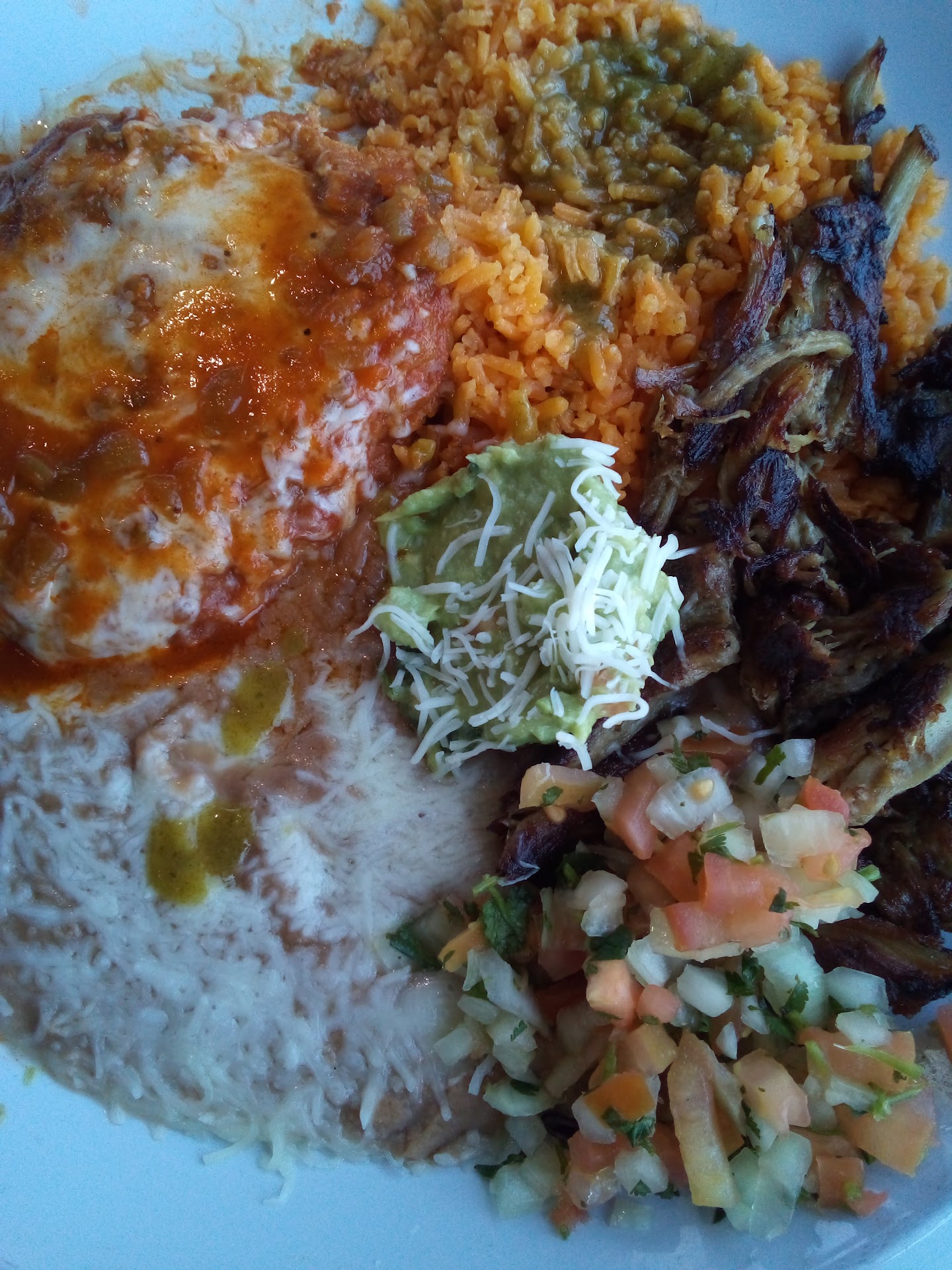 Read moreMy husband and I decided to give this place a try this evening. We spent $53 on dinner and unfortunately we were both EXTREMELY disappointed. I don't like giving one star reviews but I couldn't even eat the food. We both ordered chimichangas, and they came out cut in half length wise and served open faced with a really heavy/greasy sauce poured all over the tops of them. Think of a layer of greasy tortilla fried to a crisp, topped by a layer of greasy cheese, covered by a layer of unappetizing shredded meat, drenched in a heavy cream type sauce. I tried to get a little meat down but honestly it was gross and I stopped after two bites. My husband managed to choke his food down and now he's complaining about feeling sick. The waitress did not seem concerned that I had not touched my food or wanted a box, nor did she wait to hear my response after asking if everything was okay. I hesitated and she quickly asked something else and then left. We definitely will not...