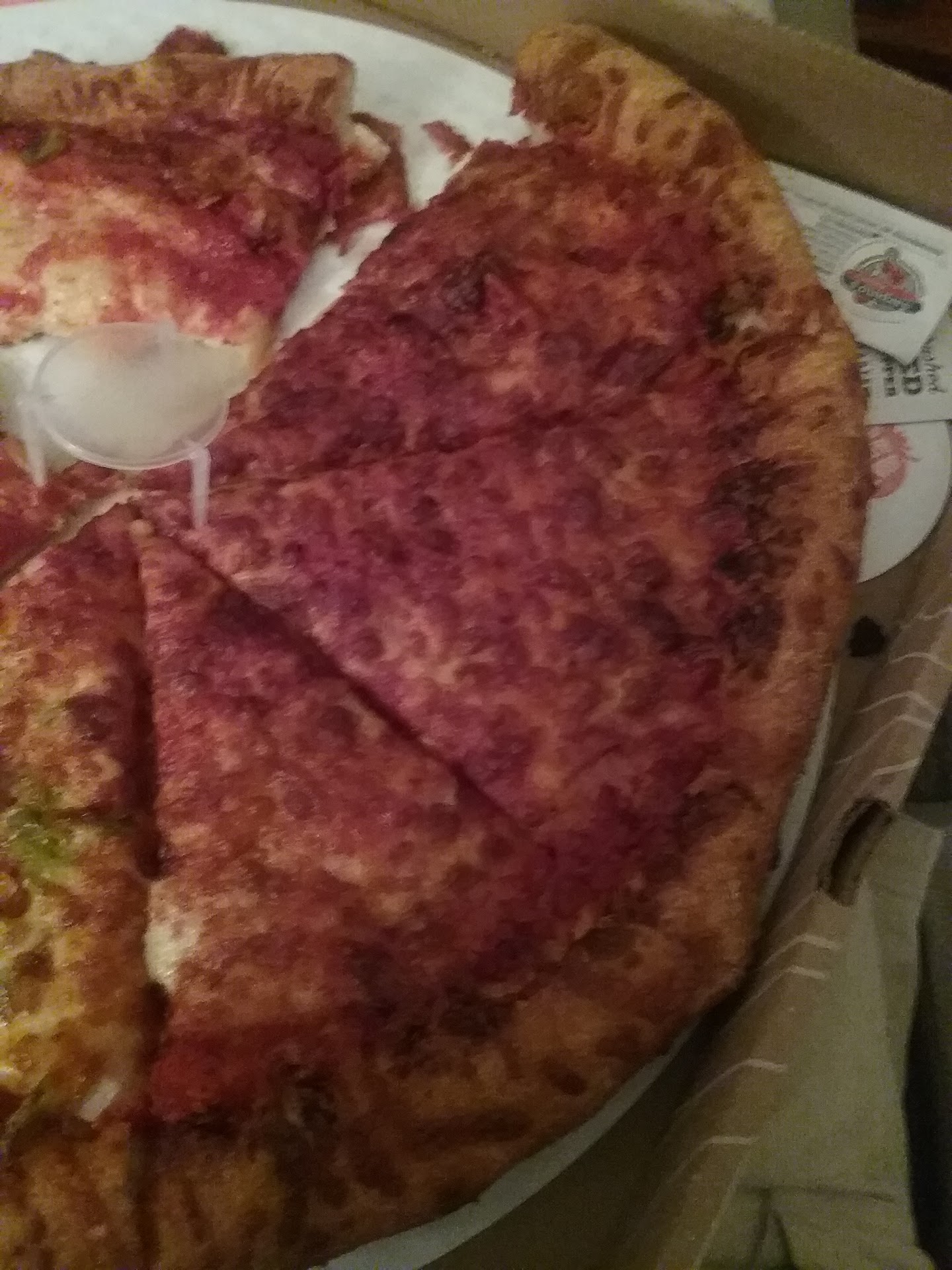Read moreWebsite is slow. Took 40 minutes to place an online order and took 5 minutes for the website to process our payment on the final screen. Tracker said 2 pizzas were cooking for an hour and went past estimated delivery time so I called to check in. Immediately put on hold. The woman who answered 5-6 minutes later didn't ask for my information but told me my pizza was on the way and left 10 minutes ago. I thanked her and told her to take care... but all I got was a "yeah" before hanging up. Definitely lacking customer service skills. Now, for the pizza. It was barely warm. So it definitely sat for awhile and the cheese was a solid slab. No matter how busy corporate pizza places get... I always get delivered hot pizza. So for me to be told "we're busy" and that's why... is a poor excuse. For $22 pizzas... I expect better. Better service, better pizza,...