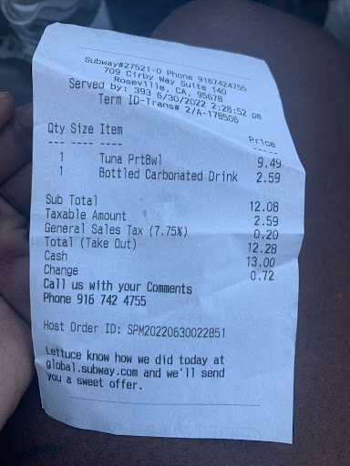 Read moreMy experience here was scary to say the least. I wanted my meat microwaved and bread and veggies toasted. The sandwich artist was confused. I explained I only wanted my veggies toasted. After toasting she put cold steak on my sandwich. She neglected to inform me they did not have a microwave or clarify my instructions to adjust accordingly. The Cucumbers and pickles were slimy, the tomatoes visibly falling apart from age. The sandwich artist seemed completely resigned and I did what I could to maintain a positive experience with her. By the end she was slightly more positive. I will not be ordering from here again. The only takeaway was that she did not limit how much of each portion she put on the sandwiches, meat and veggies, but alot of bad veggies is still...