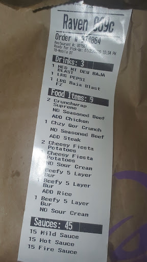 Read moreLiterally the worst service ever. I dont write reviews EVER. But this was too bad to ignore. First theres an air conditioning vent directly over the take out area in the store. The sides of cheese had such a small amount I could see the bottom of the ramekin and it was cold. Im assuming it was cold when dispensed. We went back inside to get the accurate amount of cheese (at least cover the bottom of the ccontainer) and the manager working yelled from the back of the store "NO NO THATS A PORTION IF THEY WANT MORE THEY HAVE TO PAY FOR MORE" THEN gave us the same sides back. The cheese on the grilled cheese burrito was burned and off the side so the soft shell burned too. There was barely any meat on anything but loads and loads of lettuce and fiesta strips. When I order food im not expecting to still be hungry but here I am. I had more shell than anything which went to the dog. Listen, if you hate your job that much find something else that you at least hate a little less so you dont yell at customers for asking for what they paid for. -5 stars. I feel like they work for the bad reviews so they get fewer customers on purpose at thus location. You cant get paid to do nothing. Just a rude store with nasty management. This isnt an isolated incident, but will be our last visit to this store ( which I think they want so they can sit in the back of the store and not get bothered but get paid) do yourself a favor and go to...