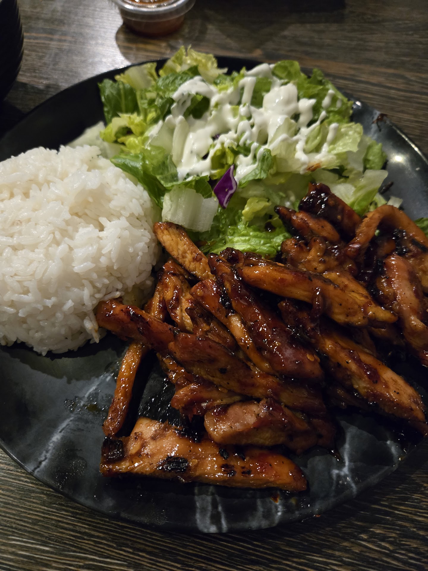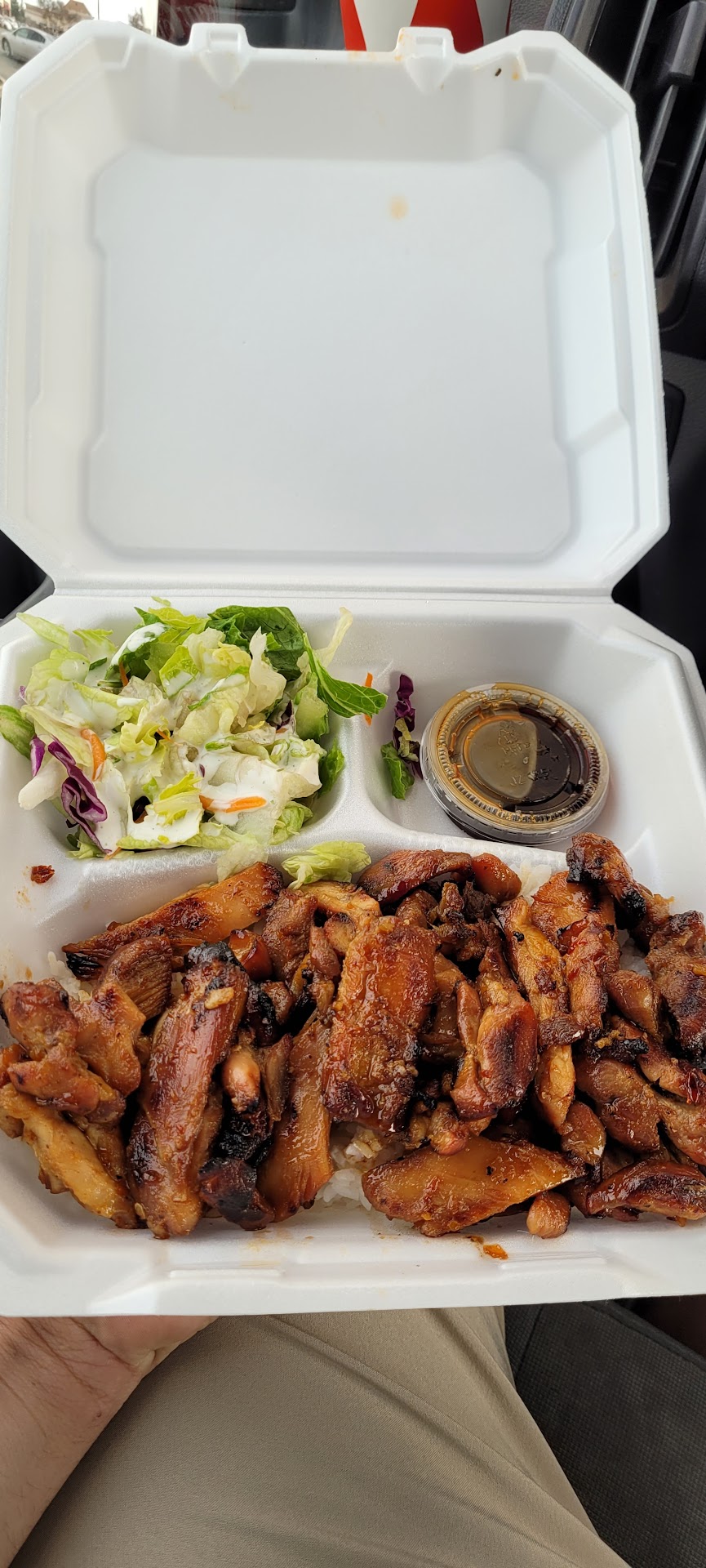 Read moreCame here on a suggestion from a coworker. The food did not disappoint. There were two people ahead of us when we walked into the restaurant. It is located in a busy strip mall. There is outdoor seating available as well as countertop seating. The man and woman (I assume they’re married, literal mom and pop shop) serving and cooking in tandem. We ordered Thai chicken, spicy but not too hot. Chicken honey hot, was a little too hot for my daughter, a California roll and a vegetable tempura. The chicken with sauce on it was great. The portions were huge we both took half home. Came with large amount of chicken white rice and a green salad. The tempura side was about 7 pieces of light crispy veggies, sweet potato broccoli onion and zucchini. The bottle of teriyaki sauce on the table is great sweet savory combo. We will be back again for great...
