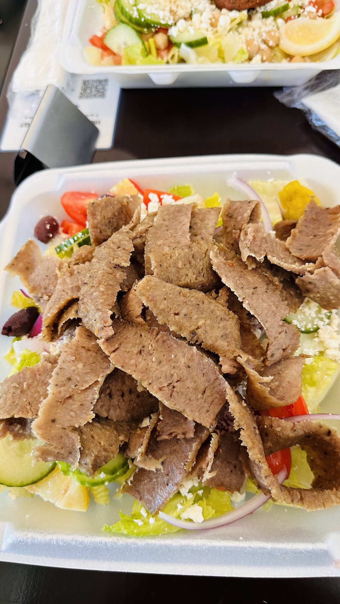 Read moreMy husband and I visited this place around 3:30 PM on Sunday. The restaurant was empty, so we were happy that we would be able to get our food quickly. We both ordered the SOUVLAKI PLATE – my husband had lamb with rice, and I had french fries with shrimp. For two portions of food, side salads, and two drinks, we paid a total of $62, including tax, which seemed a bit high for this place. We waited about 15 minutes for our food in the empty restaurant. When the food arrived, I picked up one of the two skewers with shrimp and noticed that the shrimps on the other skewer were clearly overcooked. They had tried to hide the burnt shrimp under the good ones. I returned the burnt shrimp to the girl who had taken our order earlier, explained the situation, and her response was, “I think it’s just a burnt tail, but okay, we’ll replace it.” This reaction surprised me a little, as it seemed like they were trying to deceive me twice. The new skewer of shrimp took as long to prepare as the original two full orders (again, the restaurant was empty), so by the time I finally got it, I had already eaten almost my entire portion. My fries and my husband’s rice were just okay, but his lamb was bland, and my shrimp was too salty.