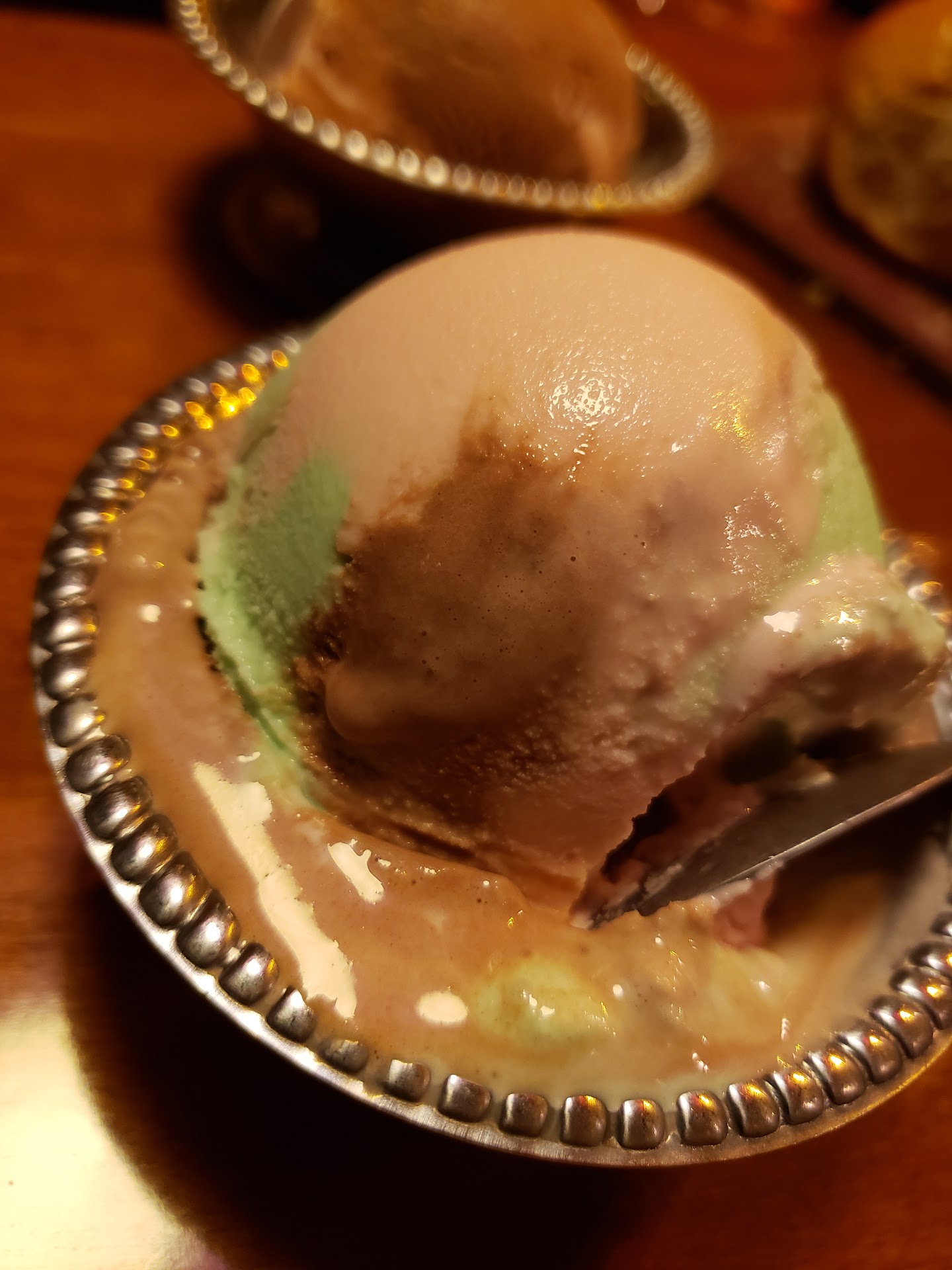Our server was very attentive even though it was as busy as could be on a Saturday evening. After finishing our meals, we all decided on their Spumoni ice cream which has always been my personal favorite. Overall, this place is big, it is loud, and if you could get past the noise, you should be good to go. It is definitely kid-friendly whole offering a ton of gluten-free options. Again, to get a complete Italian dinner with bread, salad, entree, and dessert for under $20 is a great deal. The service, experience, and price is 5-stars while the food for me is just 3-stars. That rounds the Roseville "Old Spaghetti Factory" out to four...