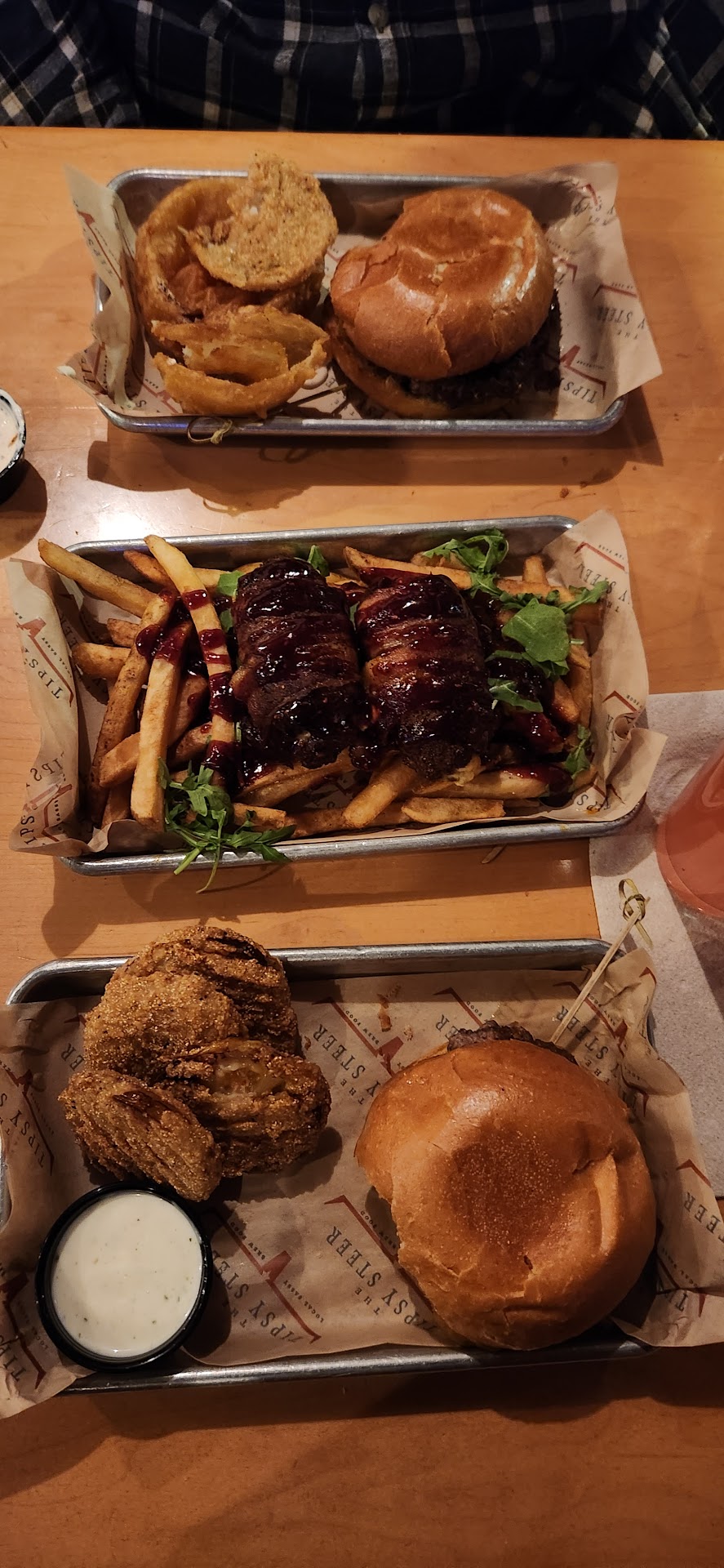 We ordered hard seltzers (blood orange and prickly pinneapple) and burgers (plain cheese burger and bacon jam burger) plus the armadillo egg appetizer, and the food was really good. Our seltzers were okay, but not the best hard seltzer we've had. My husband liked his quite a bit though. The blood orange flavor was better than prickly pineapple IMO. Prickly pineapple tasted more like prickly pear than pineapple (was a mix of the two), so if you like pears a lot, then you might like this. The seltzer had a less sweet taste than more mainstream brands, which might appeal to some more than others.