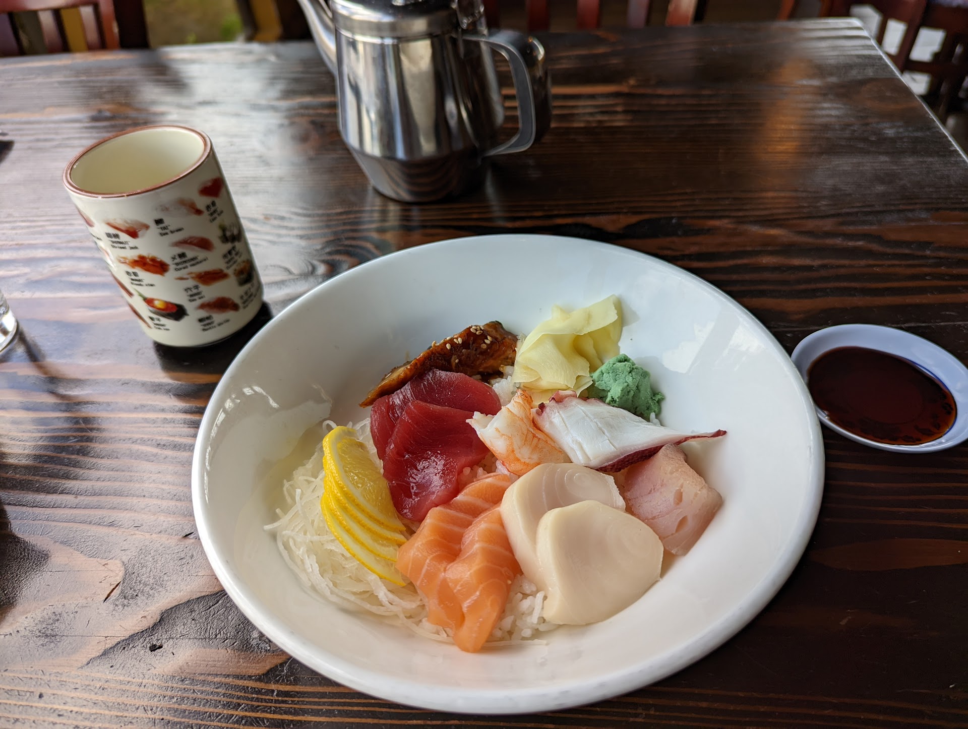 I ordered the Hamachi Kama ($17), Chirashi ($21) with tea. The Hamachi was cooked beautifully; lightly crispy on the skin and not dried out at all. It was really tender, i honestly may come back just for some Kama with rice.