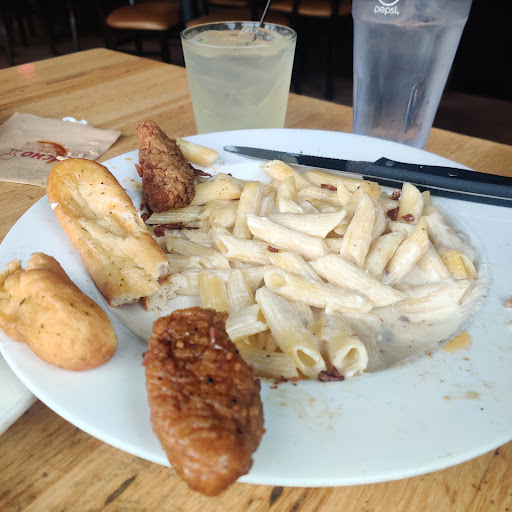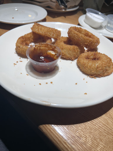 Our friend’s appetizer platters looked good and our shared opinion ring appetizer tasted good. We ordered the $2 Jose margaritas with sugar on the rims. We received 4 drinks and only one with the sugar rim. The main course. My husband’s bourbon steak was cook just as he requested. There were no complaints about the mushroom burger. The salmon meal; the salmon was dry and tough, she picked the whole piece of salmon up with her fork. The chicken tender meal was so greasy, it looked like it had been fried more than once. I put a napkin under hoping to soak it up but it didn’t help. I bit into the hard chicken “tender” but the grease was horrible. The chicken was dry and hard. The fries were good. Good seasoning and not overcooked. The baby back ribs were tiny, dry ,hard, and just a waste of time and effort. I bit into it hoping to taste juicy bbq ribs and couldn’t even bite the meat off the bone it was so hard and dry. We tried multiple times to alert Ari our waitress when she was around but we didn’t see much of her. When we did tell her about the ribs she said she doesn’t eat them because they don’t taste good. She took them back and they removed them from our order. Thank you. I thought about it and decided the tenders needed to go back too. So the manager came out and I explained and showed her the tenders. She asked if I wanted a replacement I replied no. She took $10 off for the tenders. My friend didn’t want to complain about her salmon. The lighting inside was very dim. The lighting outside was broke and there were no outdoor lights. One of the people we sat by complained about his handicapped wife tripping and falling because it was so dark. He used his headlights to help her get into the truck. Yes the tip was an insult but so was the service sometimes knowing when to keep your comments to...