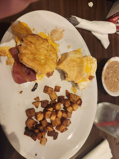 Read moreThe food was okayish but the understaffing was horrible. When we first walked in we saw about 4 ladies standing at the cash register. We stood at the booth just staring at them waiting to be seated. Finally a girl who looked like she just clocked in still putting her apron on came up to us and asked us if we were ready to be seated. The group of ladies by the register were apparently to busy with their conversation to seat us. After we sat down we ordered right away. It took 1 hour to receive our food. And when we got it the sausage was burnt pancakes dark. We were missing parts of our order and when we told the waitress she said they only had one cook on and it would be awhile longer to get new food. I had 2 young children with me who were already sitting there for 1 hour to get pancakes. I wasn't going to have them wait anymore. I told the waitress to just take what was missing off my bill. After we ate I went to pay. Again 4 girls just standing at the register still talking not doing anything. Finally I said, " Excuse me I'd like to pay my bill so I can leave now. Can one of you please check me out." The girls looked at each other then argued about who was on the register. Finally after a few more minutes I got checked out.