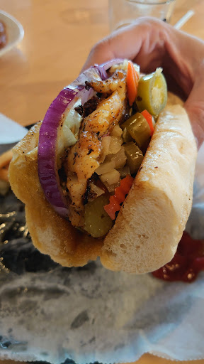 My entrée was the grouper sandwich. The fish itself was really greasy and got all over the plate. Not sure if they didn't drain the fish off properly or just holds grease. Overall sandwich was a good flavor with a nice amount of spice. The pickled peppers added a good tangy and sweet flavor to the fish and the hoggie roll was toasted nicely and fresh.