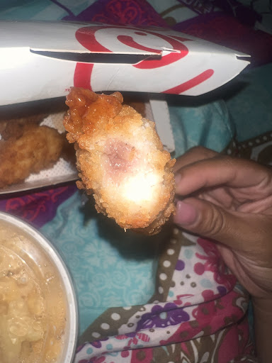 We approached the window and they had another employee hand us our food. The chicken sandwich was great. I’d definitely order that again. The breaded chicken nuggets were alright. They weren’t anything special for the price. The chicken strips were breaded nicely and had flavor. The drink wasn’t that good.