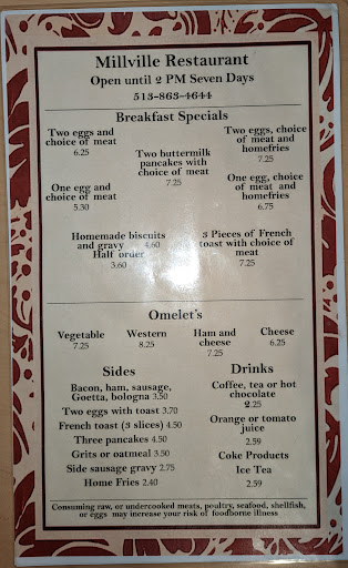 Read moreOne of my clients asked me to take him to the Millville restaurant for breakfast this morning Saturday, 7/8/17. I was very happy to do so because when my father retired from being a Rear Admiral in the Navy for 28 years in Connecticut, he and my mother moved to Hamilton, Ohio. I would come to visit them from Connecticut and we would go have GREAT HOMEMADE BREAKFASTS, LUNCHES, DINNERS & DESERTS! I now fortunately live in Ohio and have for 15 years & I am making this my last move! I love the people. I do not take anything for granite. I can not possibly tell you how wonderful Gina, James &.Cameron are always going way above & beyond to satisfy all our needs! THANK YOU ALL VERY MUCH-I CAN'T WAIT...
