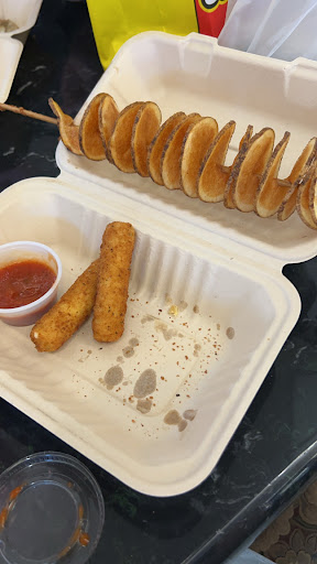 Read moreTried the tornado potato, it was delicious but it was definitely over fried bc it was completely crunchy no soft spots... I mean I still enjoyed it but I would have liked it a little less cooked. I kinda feel bad for even ordering bc the girl working looked miserable and seemed very annoyed having to deal with my order but I mean it's a business, she should be prepared for dealing with customers but I'm gonna give her the benefit of the doubt, maybe she was having a bad day. 🤷🏻♀️ she also seemed to be the only one there so maybe her coworkers called out... Idk but I'll definitely give this place another chance, I did really enjoy the tornado potato and you can't really find them anywhere so I'll be back for another. Might try a baked potato or the tots next time but I feel like that's something you can get...