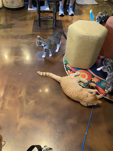 Read moreWe drove an hour and fifteen minutes to visit this very nice cat cafe. My expectations were surpassed big time. The staff, food and drink, and of course the main purpose the best kittens and cats you’ve ever seen and played with. We had a great time. This place does not smell like chemicals and pet poop. It feels like you are visiting a cat spa. If its soul purpose is to help you forget your troubles then it worked. We did not go to adopt, we went to see the kitties. Sometimes you go to places and you feel like “ been there done that” I feel the opposite. This will be on my list of staycations every year. We each had some very tasty coffee and pastries before we hung out with our new furry friends. Some great things I noticed. The cats wear collars. Our cat will not wear a collar because she never got used to it. Important for identification in case your cat gets lost. No pushy sales, Not once did someone try to guilt us into adopting. Every cat or kitten is around other cats and kittens. So if we decide to adopt down the road we know the issue with your pet and your new cat should go smooth as can be. Sorry about this long review but this place is damn...