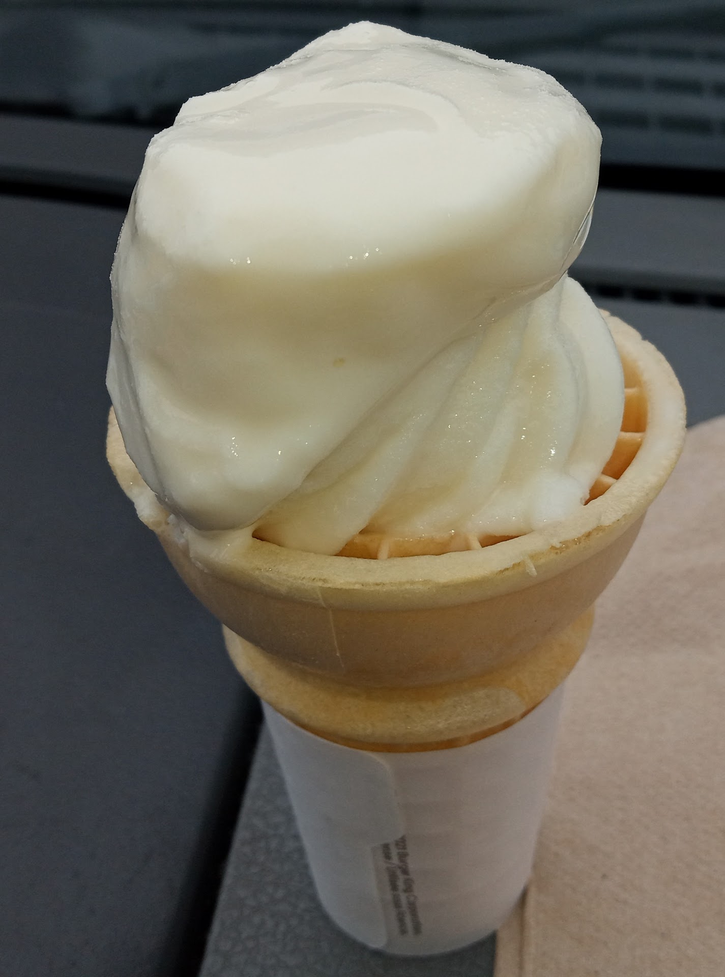 Small dab ice cream doesn't even cover the base as it's supposed to. This, after waiting for the doors to open, if you walked, you'd be out because they refuse to give the food to you walking up. The thin tall male manager did that. SMH All I can think of going through my head is the commercials, Have it your way! And then thinking of the way ice cream services started back in times gone by, see the food history channel shows!