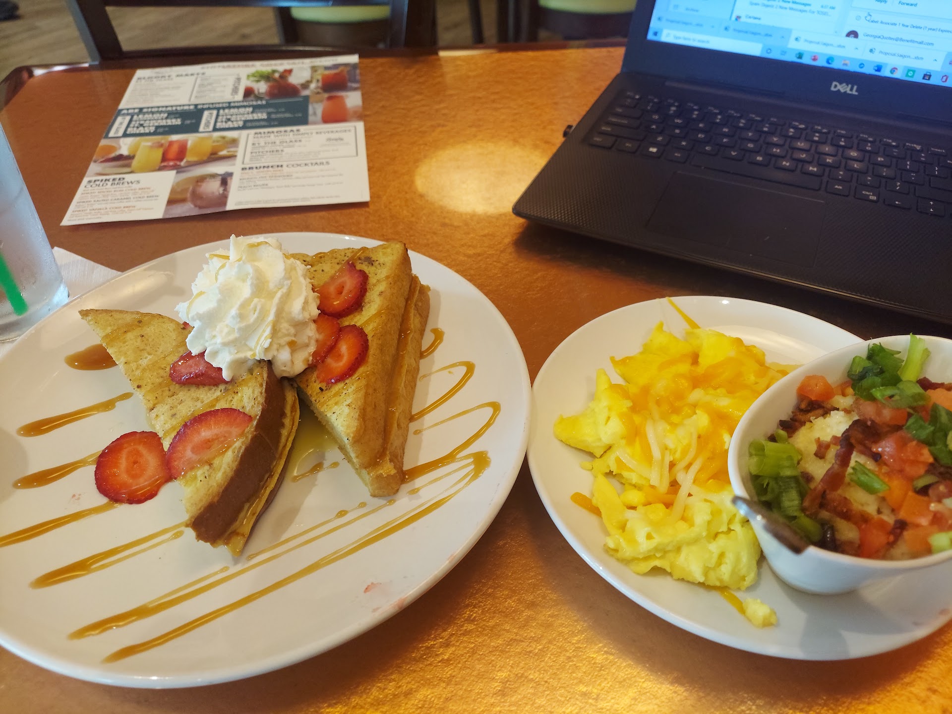 Read moreI had such an exceptional dining experience at Broken Egg Cafe that I could not wait to leave the restaurant before writing my review. I was honored to have Annie as my server and its not only because she will be studying Astrophysics in school (girl power) but also because her service was thoughtful, professional, and informative. I enjoyed the seasonal 'lemon custard stuffed french toast - w/strawberries, almonds, and caramel, City grits w/Gouda, bacon, onion etc., and eggs scrambled with blended cheese. The french toast was soo good, I didn't need syrup! That combination of citrus and light sweetness is a slam dunk! The grits were creamy and have 'no grit'!Talk about getting it right! Kudos to the Chef! I appreciated the fact that Matt stopped by to make sure my experience was great. The GM Jason was also kind and quite passionate about providing the best experience for the customers and the team he hires. They keep coming back to work there because of the leadership - you and I know that. You can tell that the love for this place was evident and the culture reflected that care. It honestly felt as though I was a guest in someone's home, more than a customer in a restaurant. This is exactly why I will be back and I cannot get the french toast out of my head!!! I drank the French roast cold brew with vanilla and every flavor of my meal worked extremely well together. The french toast will be ending on Sunday so I hope you read this review before Sun. Aug.8th 2021 or catch the next season! Don't let the simple presentation fool you, this meal packs a mean punch and I am fighting back a good nap! Life is not promised to always be great but if we could just choose kindness, the world will eventually catch on! Thanks to the Broken Egg Cafe for redeeming my morning with a great experience in dining and service. Don't miss this experience you guys! See...