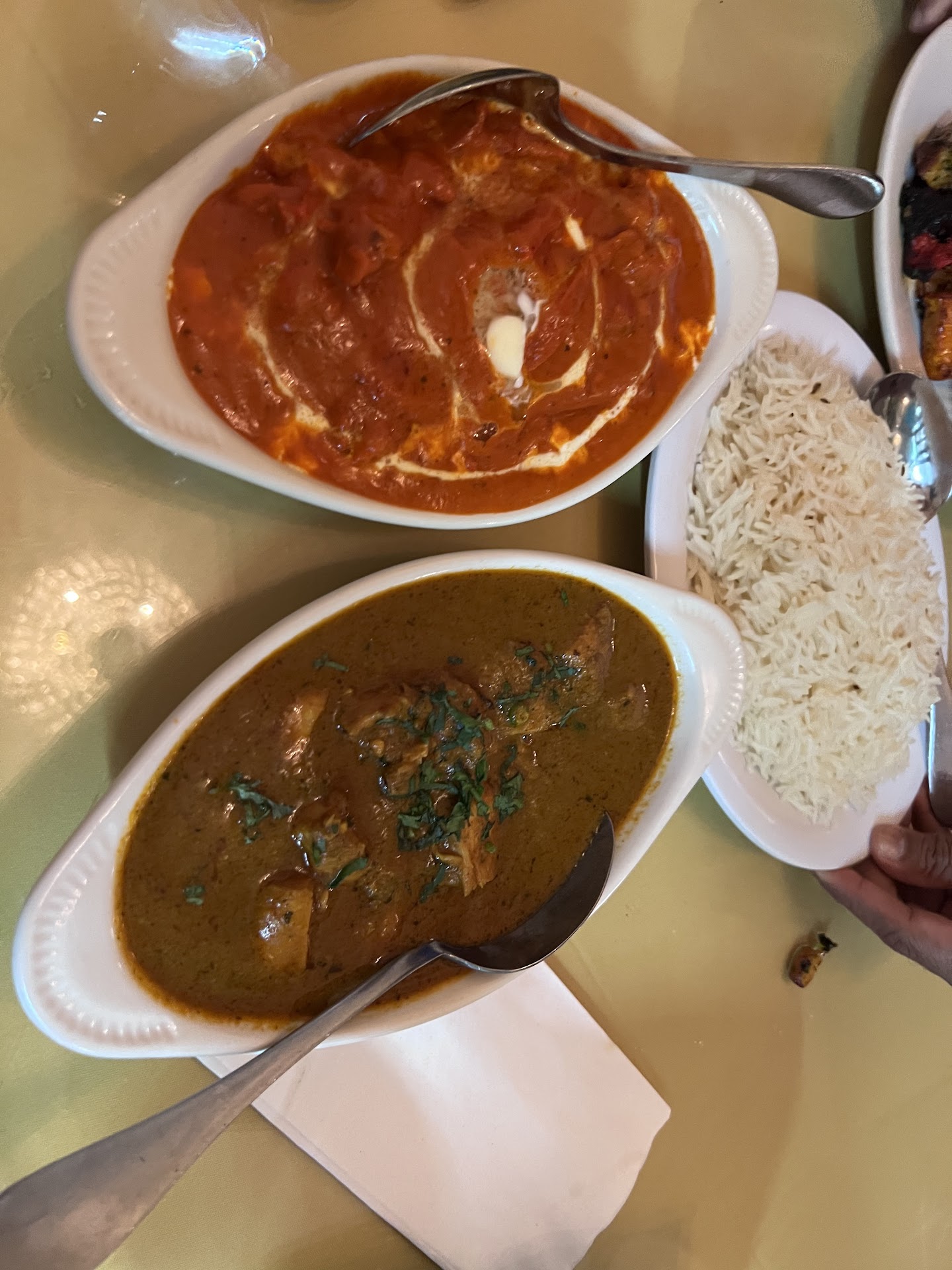 The only thing we were able to eat was the naan bread, wine, and samosas (which were not that good either frankly and lacked seasoning).