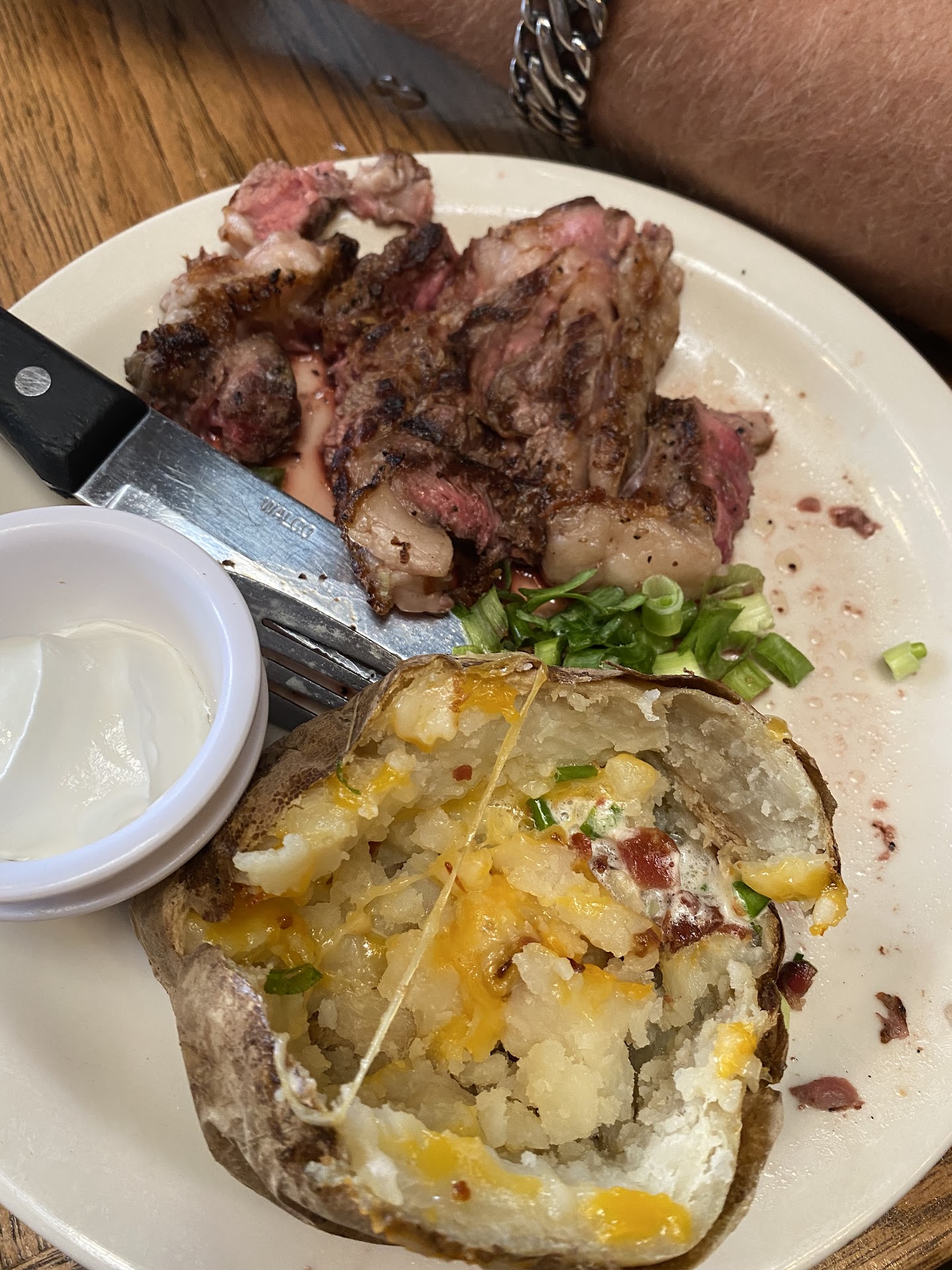 Read moreStart with the beginning, waiting twenty mins for a good steak, I would do every day all day but waiting and listening to how rude the hosts were to guests coming in wasn’t the best first impression. Also a girl coming in looking for a position with the company, the manager, if you’d like to call him that was rude to her, she seemed super nervous. Nothing inviting about the place. I’ll say, This place has an amazing salad bar and soup was decent. Do not order a steak they don’t know a good steak. My 8oz Baron was horrible, not cooked at Medium Rare it was burnt and raw, no seasoning. Tasted like you pulled it out of the freezer and did no prep. The Ribeye my husband ordered was also horrible, raw and no real taste. I know a ribeye has fat but can we get a steak please. My daughters ribs were bleeding no go on pork for us, after waiting forever for the next best it was drier than jerky. Wasted a good 80 bucks and two hours we’ll never get back. There was no real customer service or concern to the issue. (TMI update but not even thirty mins later we’re sick.. not good, people stay away) The server Natasha was on it, great help to her ability and super nervous that the food wasn’t good at all. I felt bad for her but more so for our stomach we wasted two hours and a eighty bucks. The banana pudding is a joke my grandson at age 4 could’ve would’ve done a better job hands down. The bread was horrible, unless you’re into eating rocks. We will never be back, hope this helps anyone else that hasn’t been here before. DO NOT WASTE YOUR TIME OR MONEY, ( OR YOUR GUT).. sad to say we were looking...