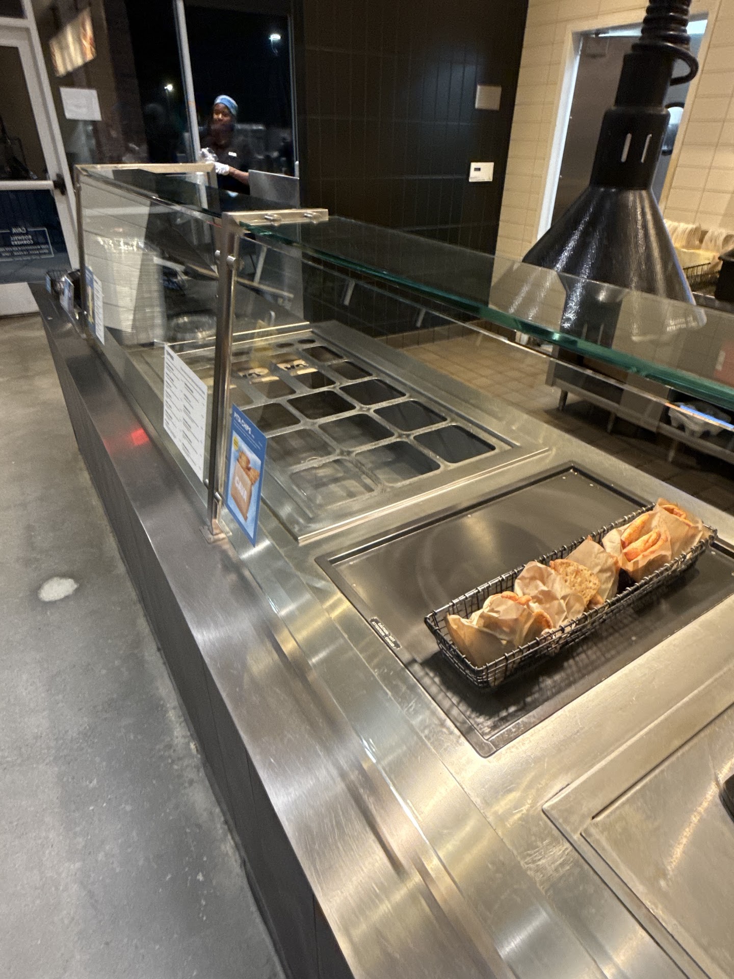 Unfortunately I had a less than stellar app order experience with this location. I ordered a family meal, something I had never ordered from Cava before. It states it feeds 4-6. You pick a grain, a salad, up to three dips, up to three toppings, protein, and a dressing. It comes with pita bread as well. After ordering I received a phone call stating they were out of pita for this order due to pita shortages. Okay, I understand shortages, itâs a way of life these days. It would have been nice to have been offered something in its place since you are paying for items you wonât be receiving, but that was not the case, even when I asked. Fine, I proceeded; we had pita chips at home. When the food arrived however, I was surprised, and not pleasantly. The food was thrown into the bags (or maybe it was thrown around by the DoorDash driver who dropped it off). Items were stuck to the lids, leaking out, etc. I could not lay the blame on Cava, had no idea who caused the messy bag, but that wasnât the worst part. When I opened the container of toppings, remember this is three toppings, and is supposed to supply enough food for 4-6 people, and yes they were all together in one container, I was shocked. I chose marinated cucumbers for one. There were 5 tiny chunks. I counted. I also chose kalamata olives. It looked like one olive sliced made the box. Finally, I chose marinated coleslaw, maybe two tablespoons were inside. The toppings didnât even cover the bottom of the container. FOR 4 - 6 people. The last time I ordered a pita sandwich from Cava it had more toppings on that one sandwich than in this entire âfamily meal.â I know this is a new location, and I still like the food at Cava, but this was a disappointment, and left me scrambling to make some things at home - which was counter to the point of ordering delivery in the...